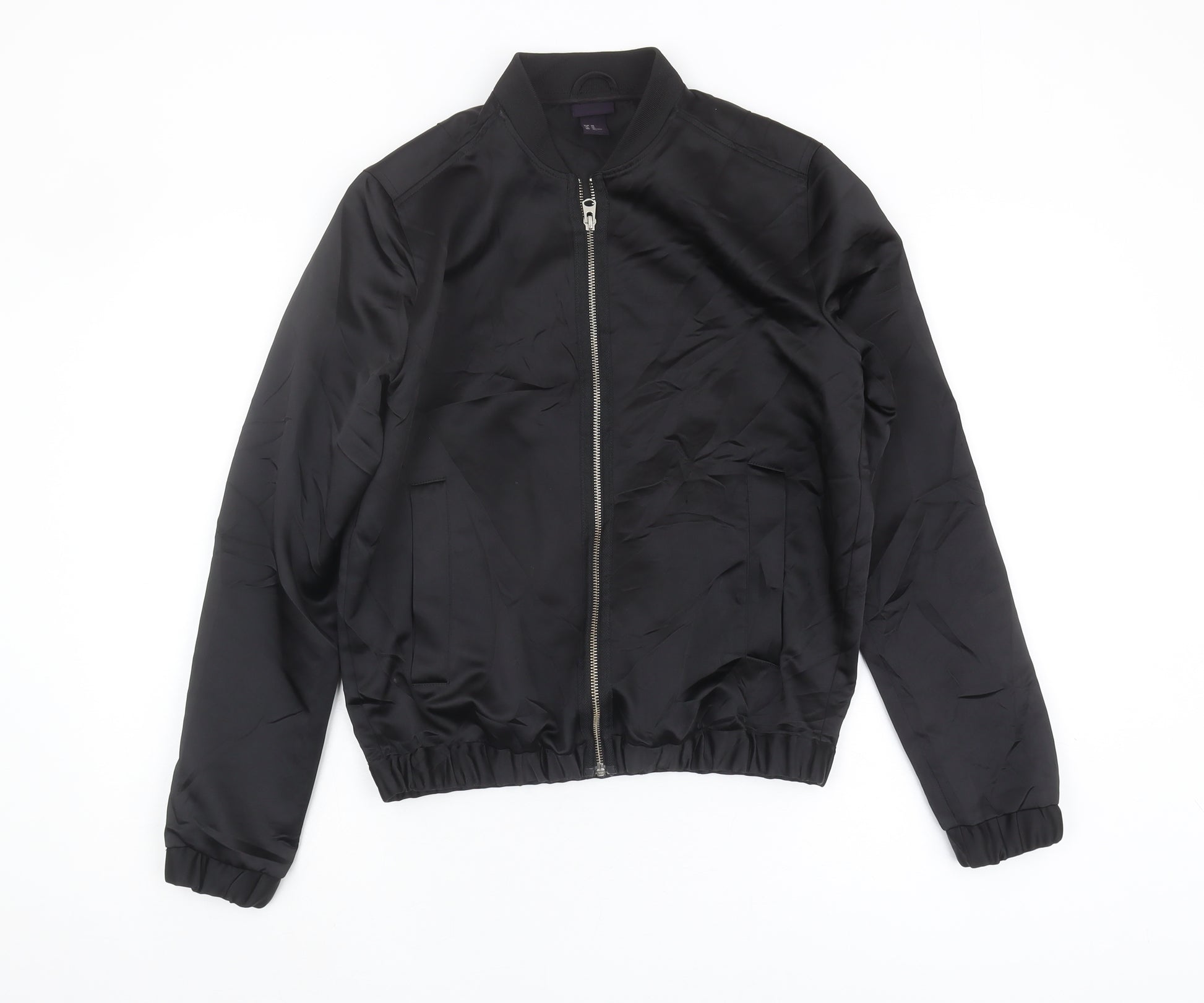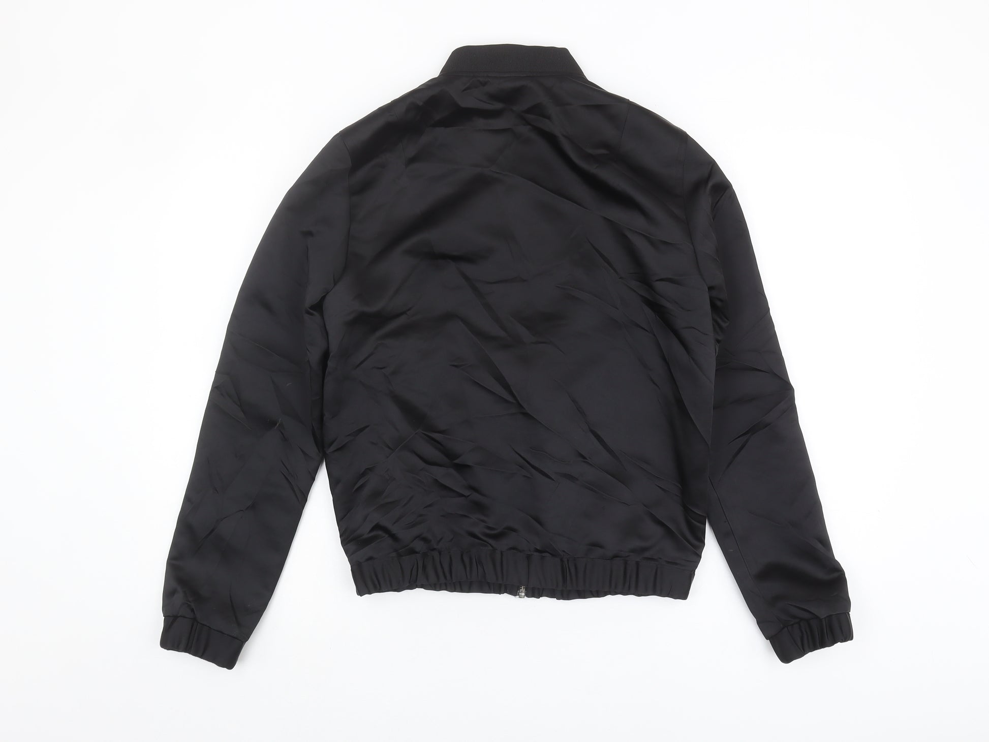 Upgrade your outerwear collection with this chic black bomber jacket by H&M, a perfect blend of style and comfort crafted for women. This XS-sized jacket features a contemporary full-zip closure and a sleek satin finish, making it an ideal choice for those looking to make a subtle fashion statement. Made from durable polyester, it ensures longevity and withstands seasonal wear. The jacket boasts a fully lined interior for added warmth, offering both style and practicality for autumn and spring outings. Its regular fit and short length provide a flattering silhouette while ensuring comfort throughout the day. With long sleeves and a versatile black hue, it's perfect for casual occasions or layering on cooler days. Machine washable for effortless care, this jacket is designed to fit seamlessly into your busy lifestyle. Don't miss the chance to showcase this timeless classic that combines modern elegance with everyday functionality. Whether you're heading to a casual gathering or a relaxed weekend adventure, this jacket is your go-to choice for effortless styling.