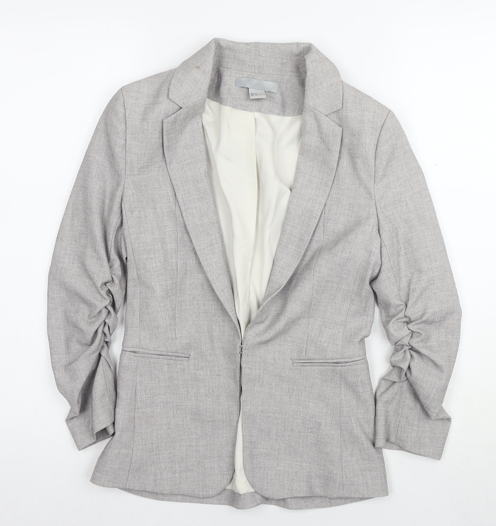 Elevate your professional wardrobe with this sophisticated women's grey blazer from H&M. Crafted with a refined blend of polyester, viscose, and elastane, this mid-length blazer offers a classic yet modern look perfect for both business and workwear occasions. The blazer's lined interior adds comfort and durability, ensuring you stay polished throughout the day. Designed in a sleek basic jacket style, it's ideal for autumn and spring, providing a versatile piece to pair with your favourite outfits. Featuring a single-breasted silhouette and a secure hook & eye closure, this regular-fit blazer flatters a wide range of body types. Its regular size type accommodates those who appreciate an easy-to-wear, machine-washable garment. Though pre-loved and showing very minor fabric wear, it remains in excellent condition, making it an affordable and stylish addition to your wardrobe. Whether heading to work or a formal event, this grey blazer is a timeless piece perfect for completing any sophisticated ensemble.