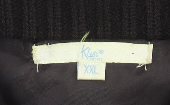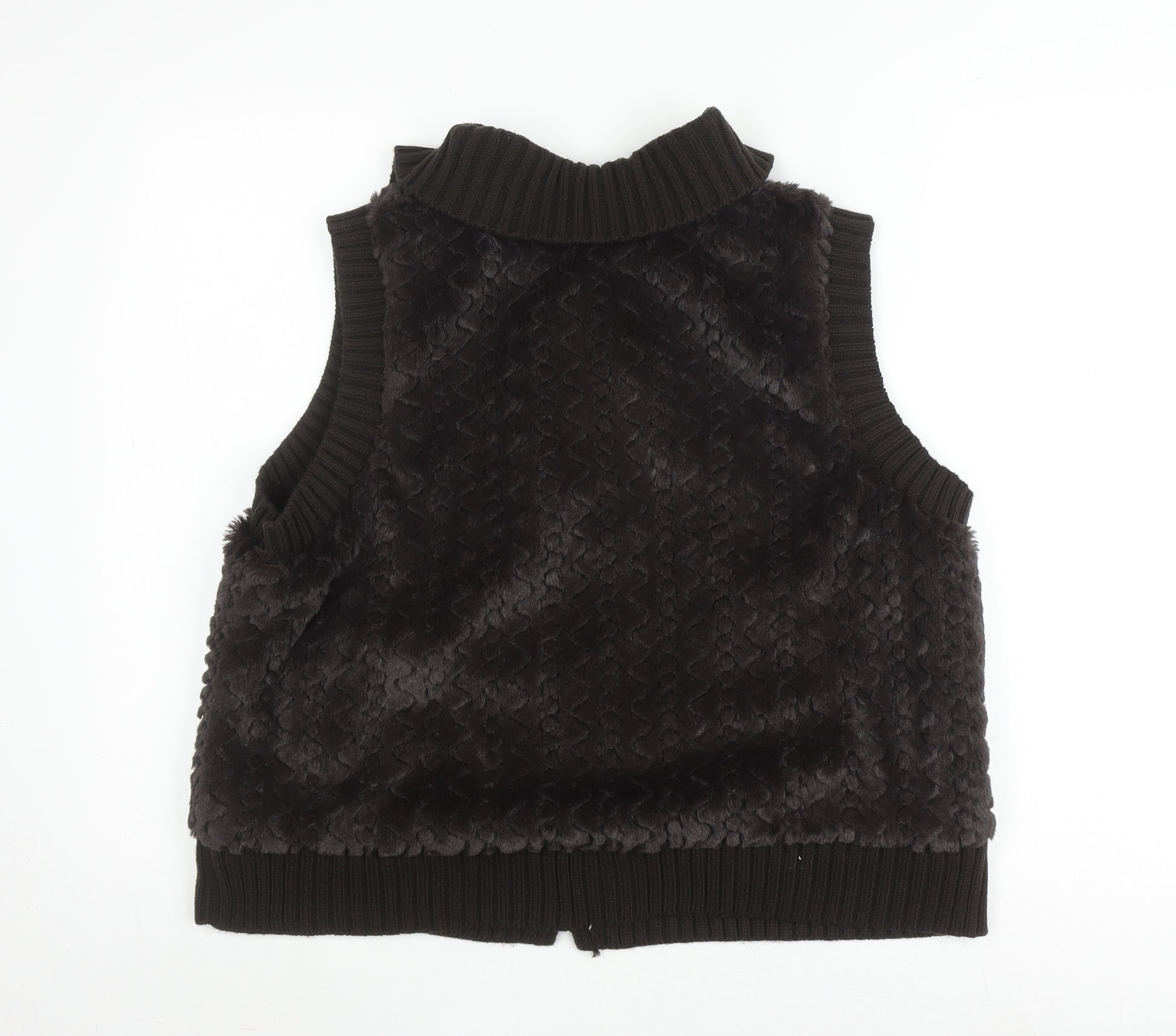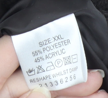Discover effortless style with this Kiss women's black waistcoat. Crafted from a blend of polyester and acrylic, this sleeveless design offers a plush feel and contemporary flair. Sized at 2XL, it provides a comfortable and relaxed fit, ideal for layering over your favourite tops. Perfect for casual outings or adding an extra layer of warmth on cooler days. Its sleek black hue ensures versatility, easily pairing with various outfits in your wardrobe. This piece is great for year-round wear, adding a touch of elegance to any look. Despite being used, it maintains a pristine condition without visible damage, offering excellent value. Easy to care for with dry clean only instructions. Elevate your wardrobe with this chic and practical addition.