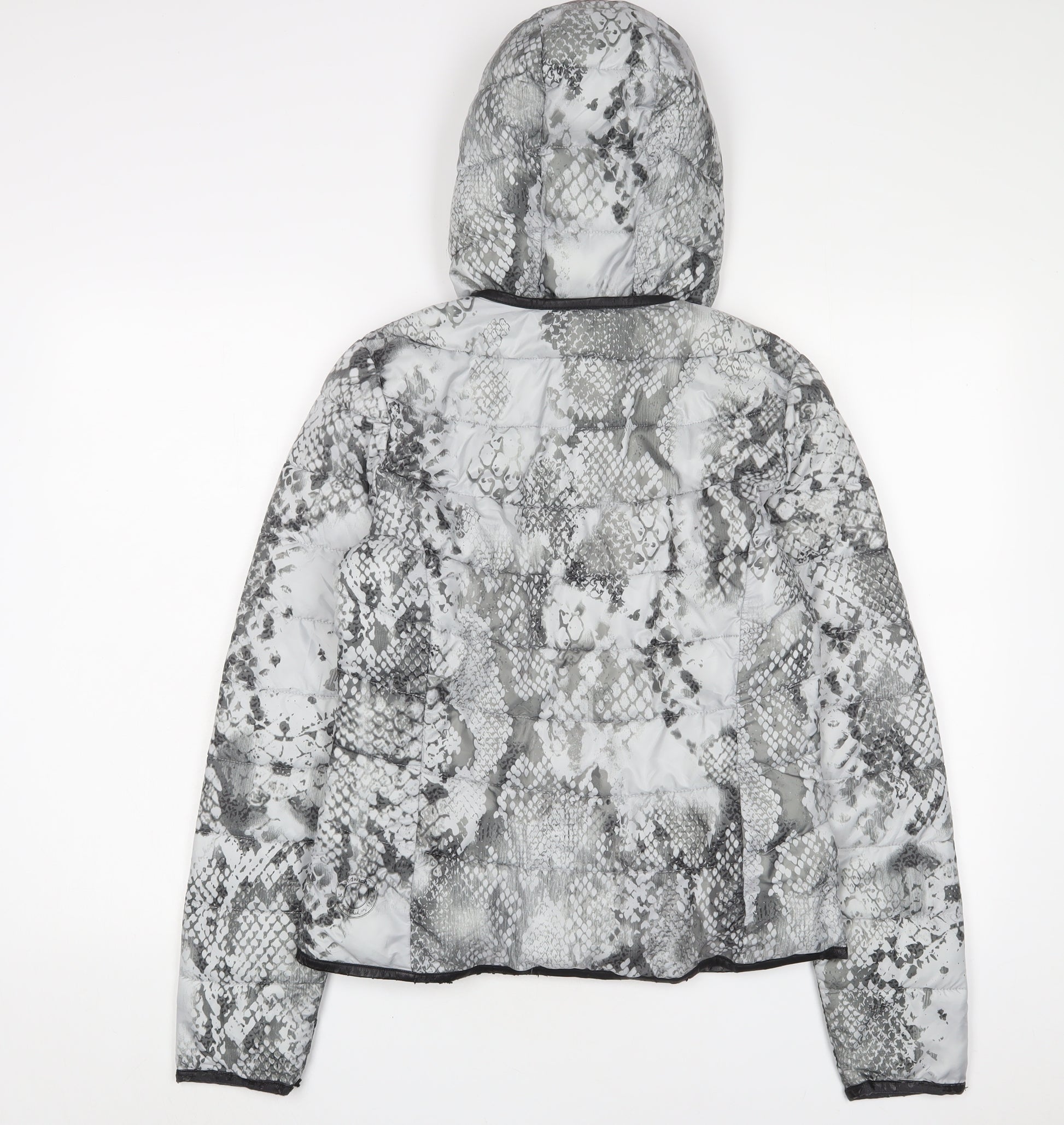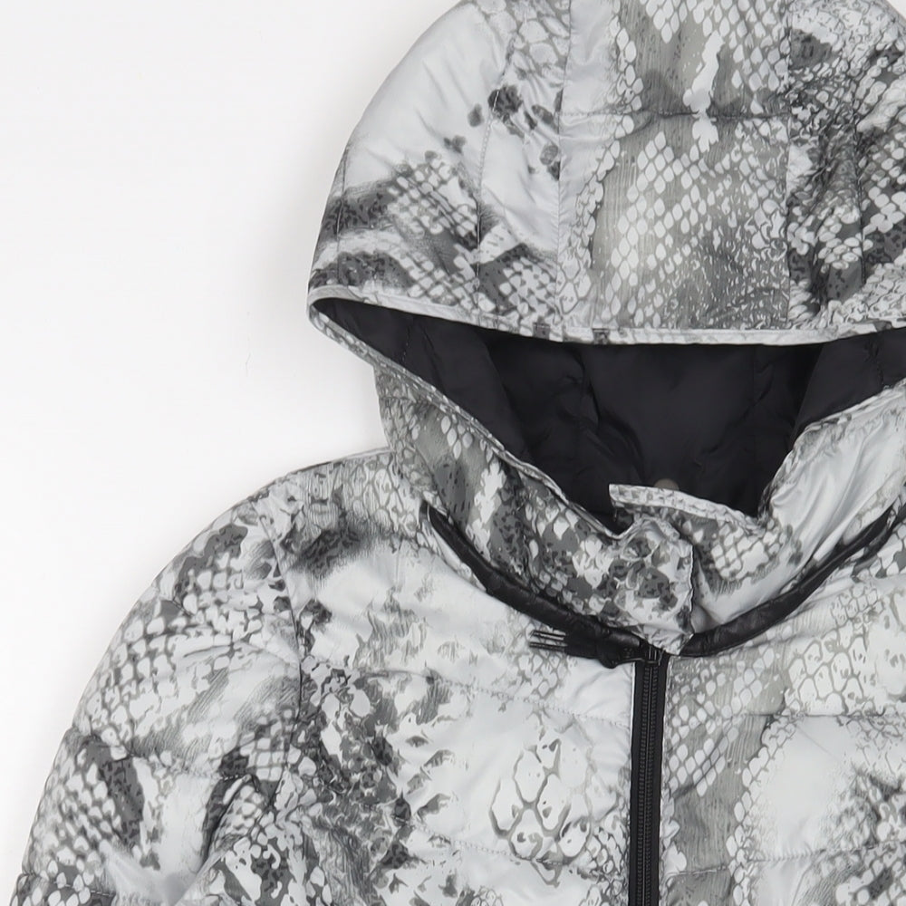 Womens Grey Animal Print Puffer Jacket Jacket Size 8 Zip