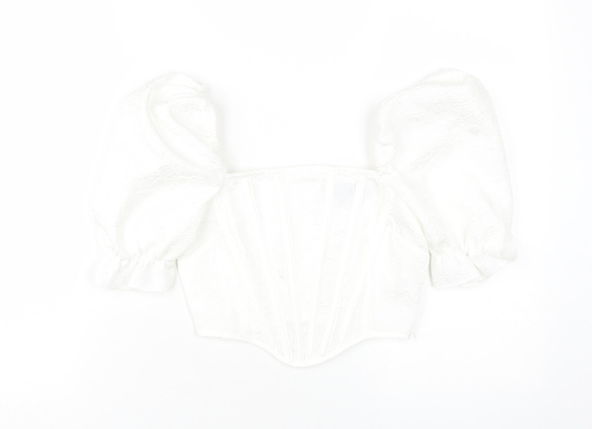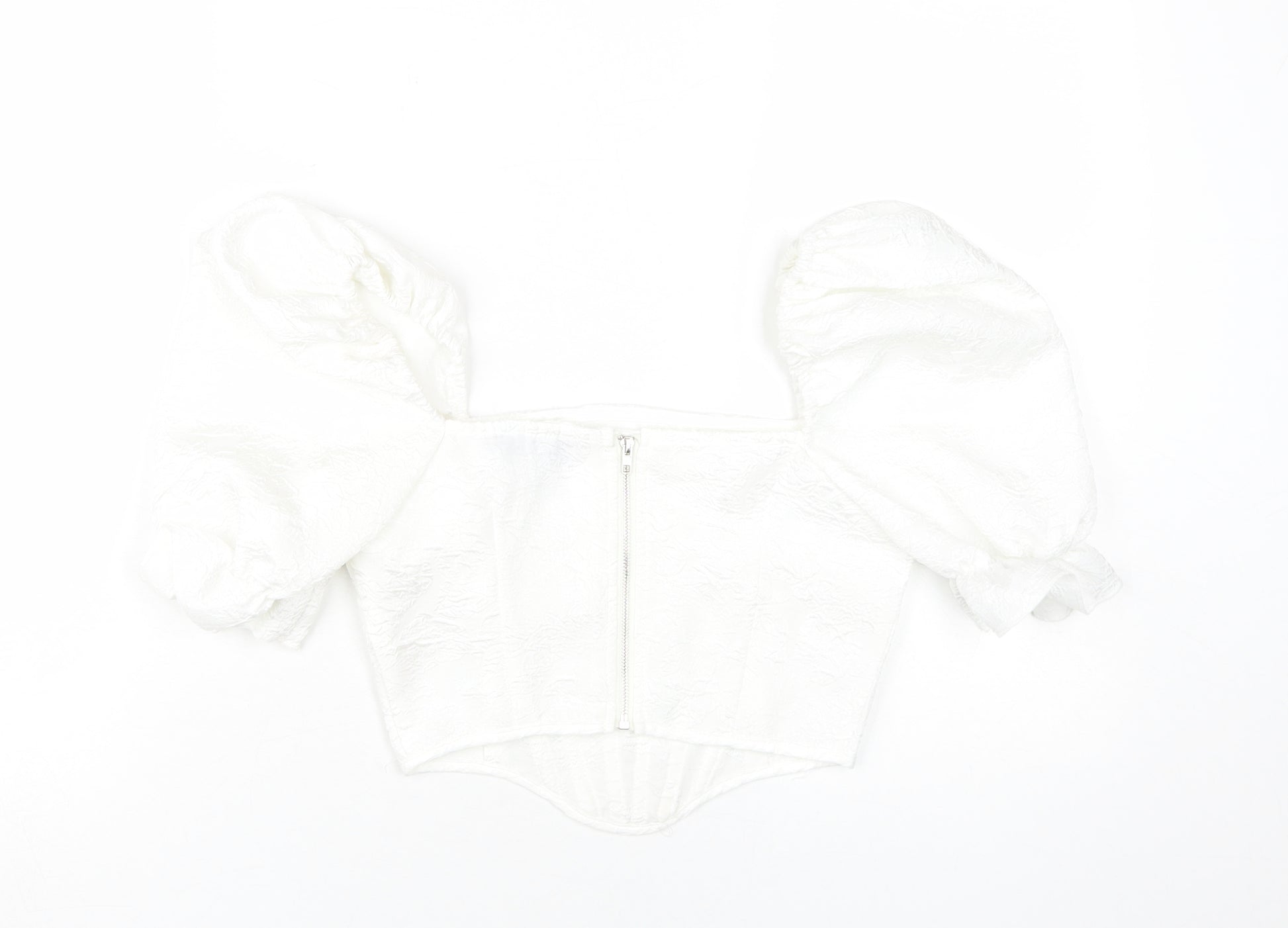PrettyLittleThing Women's White Cropped Blouse - Size 6 Puff Sleeve