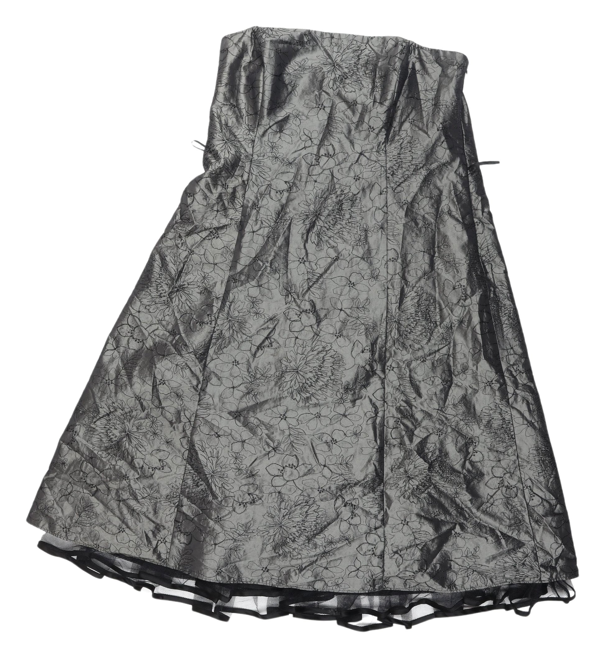 Discover timeless elegance with this exquisite Debenhams Women's Grey A-Line Strapless Dress. Crafted for sophisticated charm, this dress features a beautiful floral pattern in a sleek grey shade, perfect for making a statement at any party or cocktail event. The A-Line style gracefully flatters the silhouette, while the strapless neckline adds a touch of modern allure. Made from a quality blend of nylon and polyester, this dress ensures a comfortable fit and durability. Its lined interior adds an extra layer of luxury, making it perfect for autumn and winter occasions. Although this dress doesn't have its original tags, it's in excellent condition, showcasing impeccable care and style. Pair it with your favorite accessories for a memorable look. Whether you're attending a formal function or a casual gathering, this dress effortlessly combines style and sophistication, making it a valuable addition to any wardrobe. Embrace elegance and grace with this Debenhams masterpiece.
