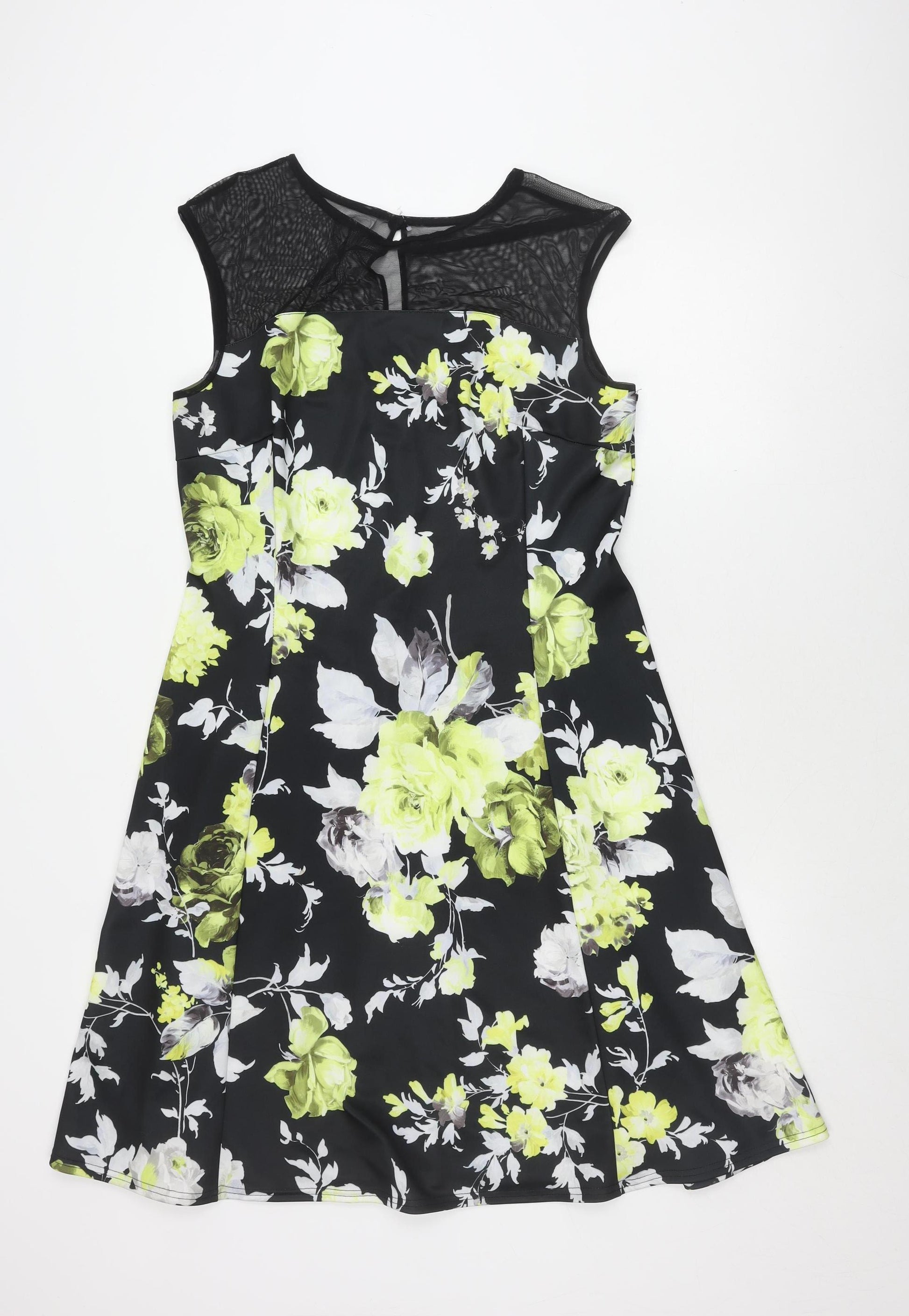 Step into elegance with this stunning Roman Women's Dress, a vibrant addition to your wardrobe. Designed in a flattering Fit & Flare style, this dress hugs your curves gracefully at the waist before flowing into a beautifully flared hem. The captivating multicoloured floral pattern stands out against the backdrop, ensuring you make a statement at any party or cocktail event. Crafted from a blend of high-quality polyester and elastane, the dress offers a comfortable stretch fit perfect for spring and summer outings. Featuring a sleeveless design and a modern crew neckline, this knee-length dress exudes timeless sophistication. The lightweight fabric ensures easy movement, while the discreet zip closure provides a seamless finish. Its machine washable attribute guarantees hassle-free care, making it a practical choice for regular wear. Whether you’re attending a garden gathering or a festive soirée, this dress is set to impress. Embrace the joyous hues of the floral print and exude confidence wherever you go. This brand new piece, delivered with its original tags, promises exceptional quality without any flaws. Make it yours and enjoy countless memories in style.