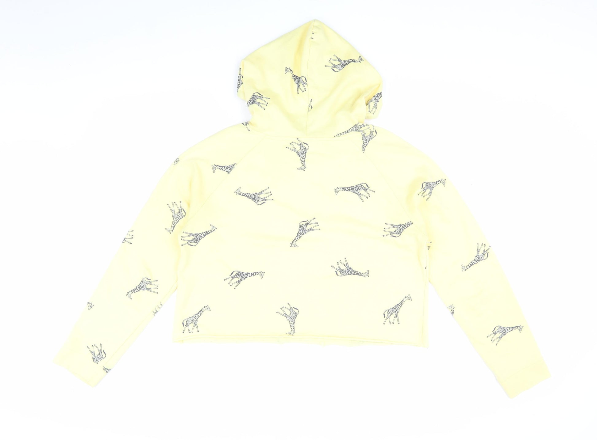 Yellow Hooded Animal Print Hoodie M