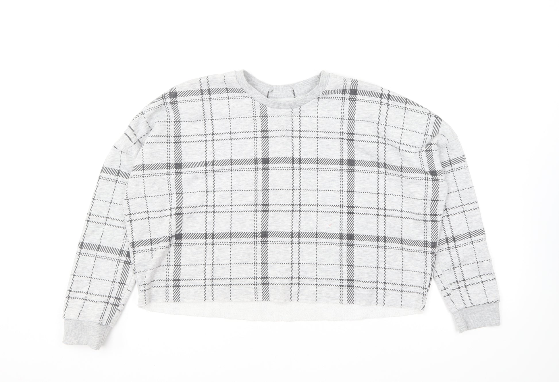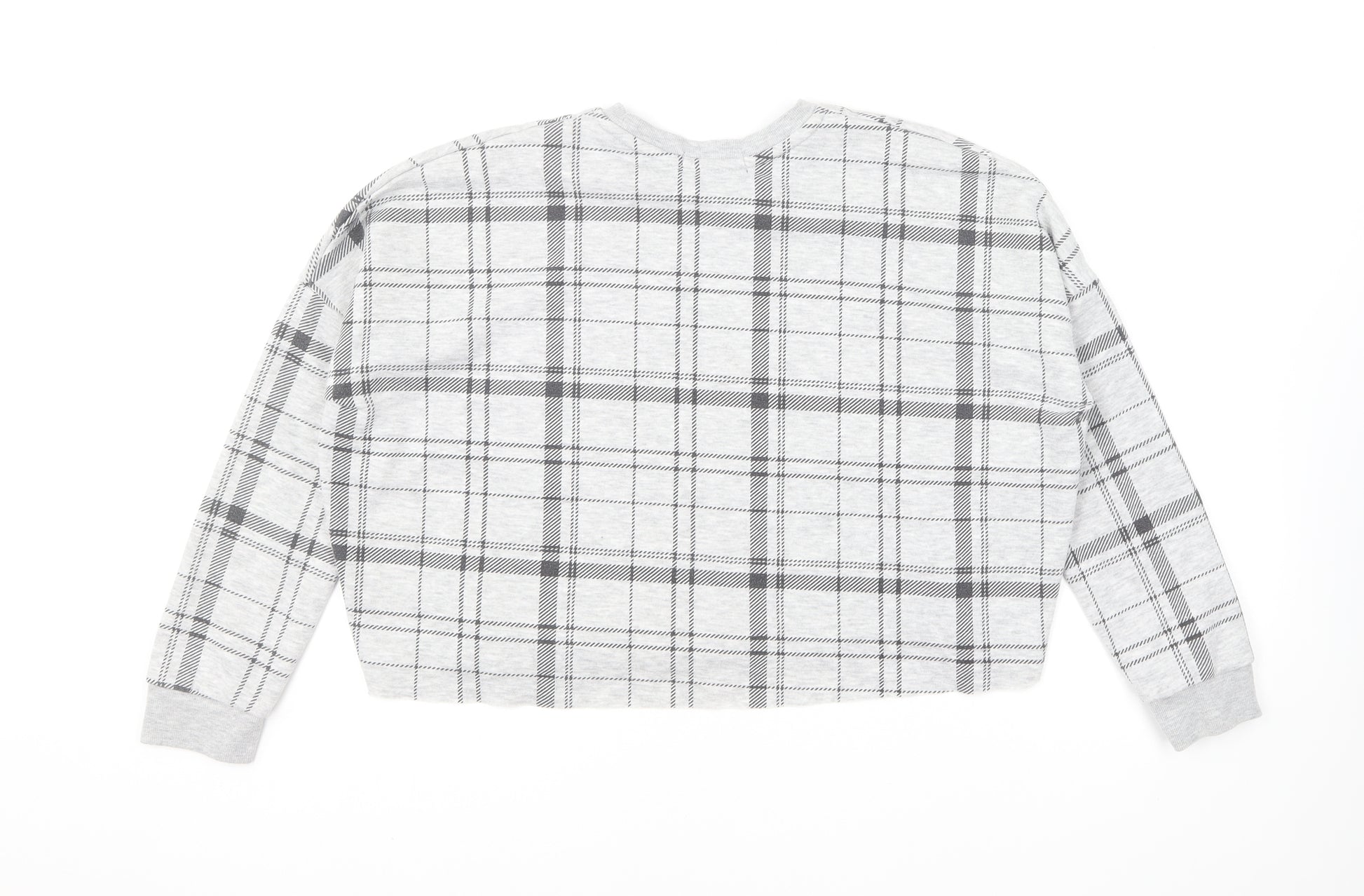 Womens Grey Plaid Polyester Pullover Sweatshirt Size XS Pullover - Cropped