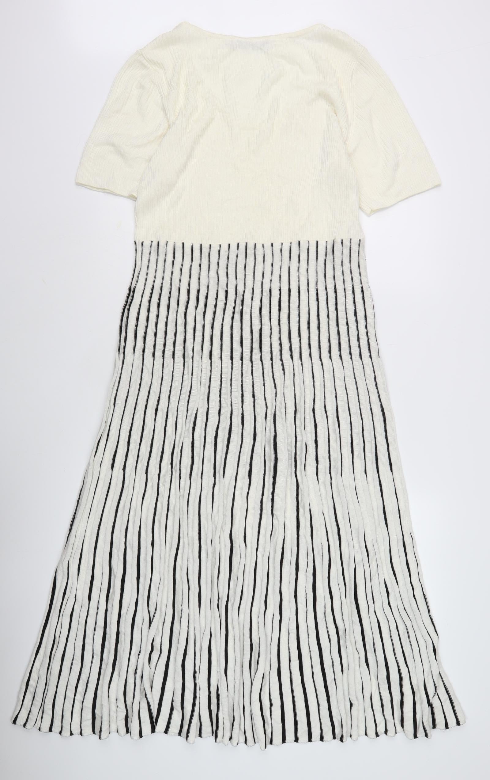 Marks & Spencer Women's Ivory Black Striped Dress, Size 16