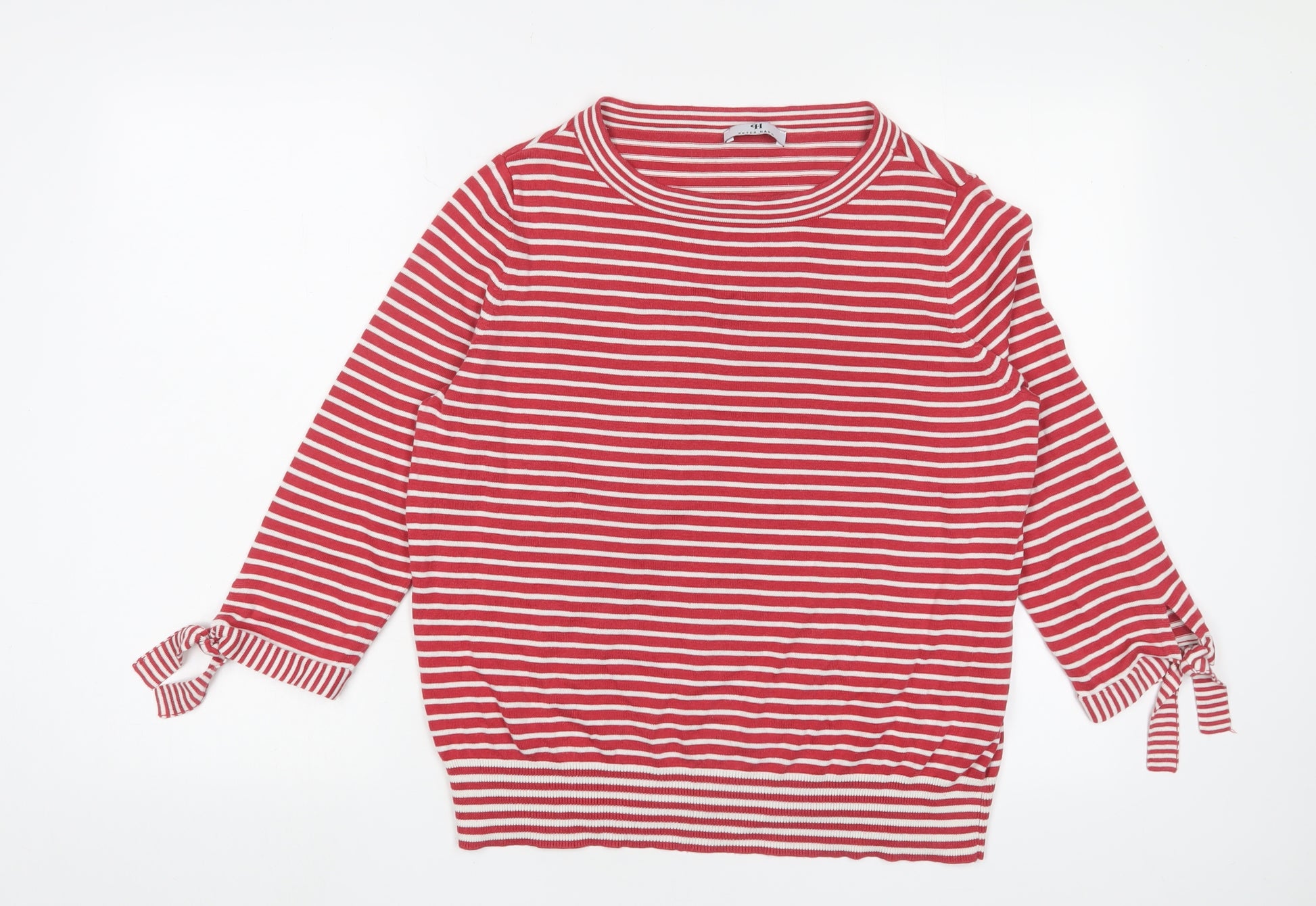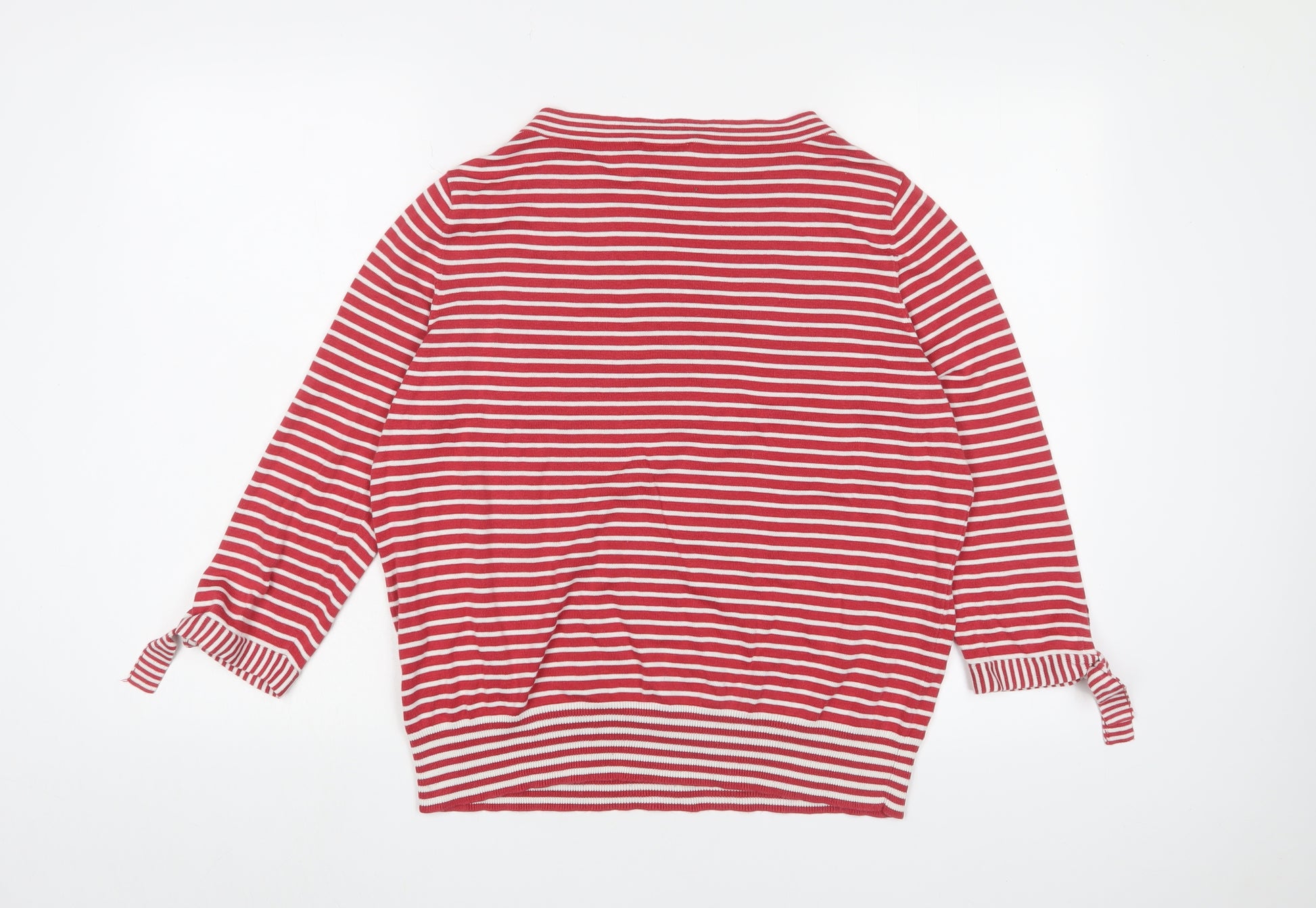 Womens Red Crew Neck Striped Cotton Pullover Jumper Size 16