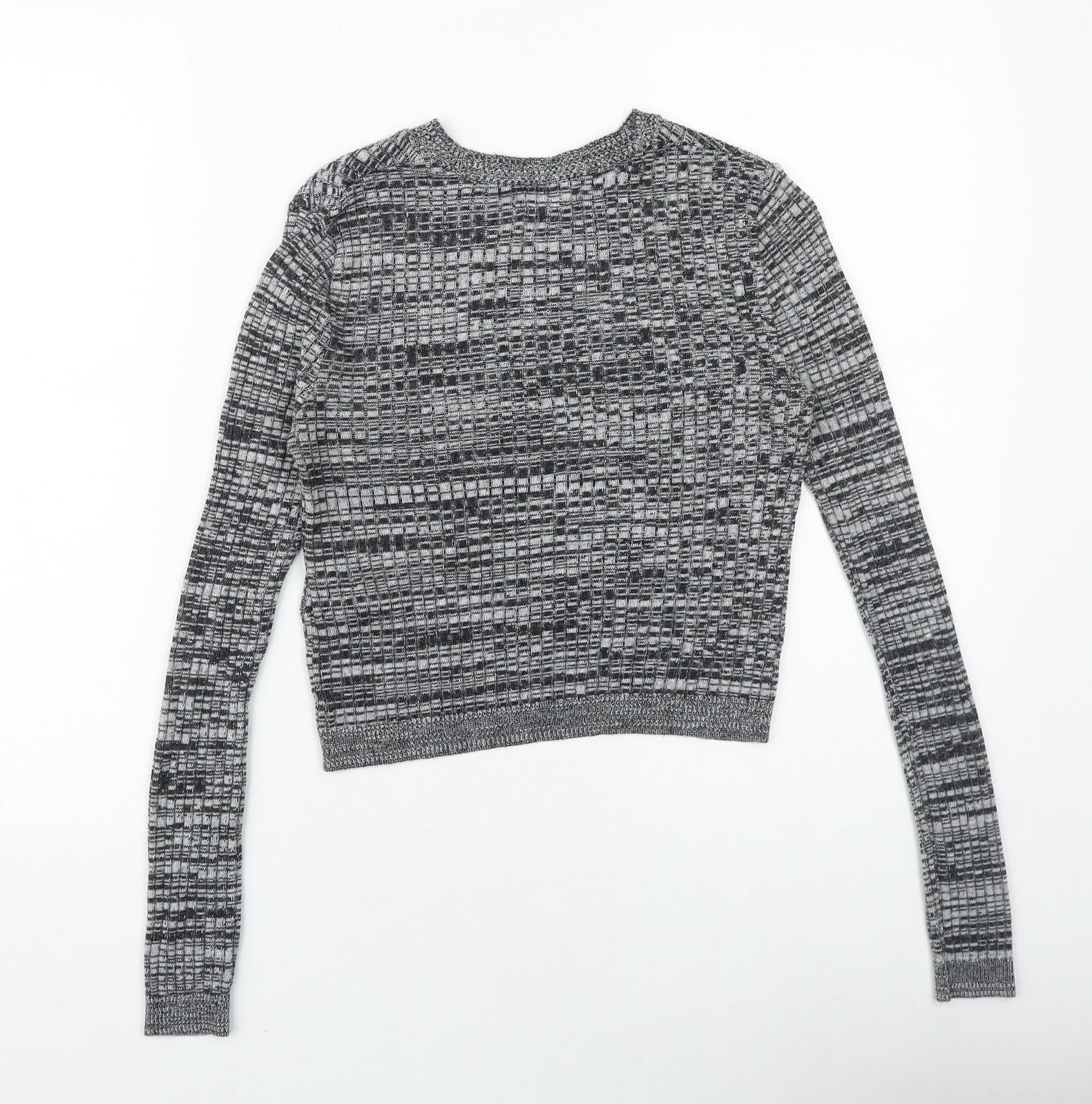 Womens Grey Round Neck Acrylic Pullover Jumper Size 6 Pullover - Ribbed