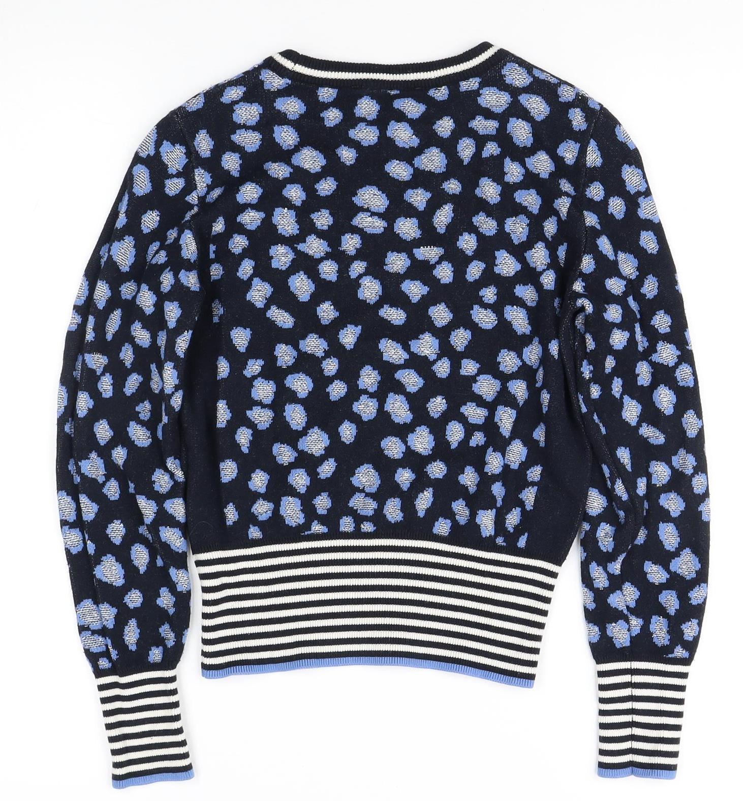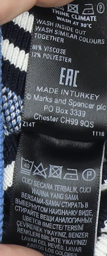 Step out in style with this Marks and Spencer Women's Blue Pullover Jumper. Crafted with a blend of 83% Viscose and 17% Polyester, this jumper offers both comfort and durability, making it ideal for autumn and winter months. The crew neck and long sleeves provide a classic silhouette, while the eye-catching animal print adds a playful twist to your wardrobe. Designed for casual settings, this regular fit jumper is machine washable, ensuring easy maintenance. Perfect for pairing with jeans or trousers, it promises to be a versatile addition to any closet. Although pre-owned, it remains in excellent condition with no visible flaws, making it a great bargain at this price. Embrace the stylish design and superior quality that Marks and Spencer is known for. Don't miss the chance to own this chic pullover that's perfect for everyday wear.