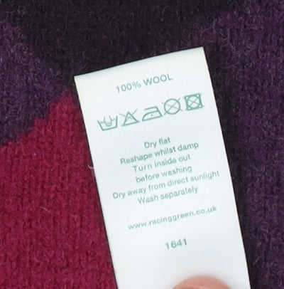 Discover timeless elegance and cosy warmth with the Racing Green Women's Multicoloured Roll Neck Jumper in Size 12. This luxurious pullover is crafted entirely from 100% wool, ensuring the utmost comfort and insulation during the chilly winter months. Its intriguing Argyle/Diamond pattern in a blend of rich, deep hues elevates your wardrobe, offering both versatility and style. Perfect for a casual outing or a quaint gathering, this jumper features a classic roll neck, providing added warmth and a chic silhouette. The long sleeves and regular fit cater to comfort needs without compromising on style, making it a staple piece for any winter wardrobe. With its regular size type, this jumper perfectly complements various body shapes, ensuring a flattering fit. Designed with the finest knit fabric, this jumper promises a soft touch against your skin, encouraging a layer of sophistication to any outfit. Maintain its pristine look with gentle hand wash care. In excellent condition, it shows no visible wear or damage, promising a like-new charm. A perfect choice for casual occasions in cold weather, this piece from Racing Green embodies both tradition and modern elegance.
