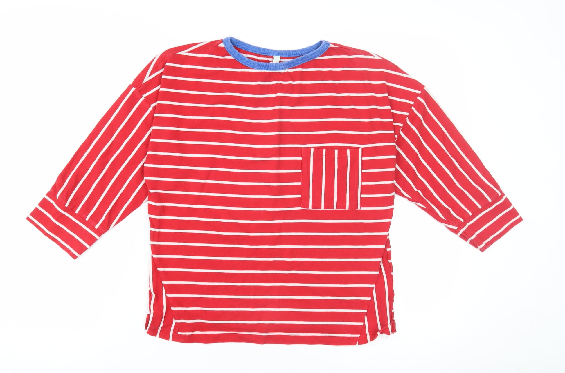 Elevate your casual wardrobe with this stylish XRCICI Teens Red Striped Ringer T-Shirt in size XS. Designed with a vibrant red base and classic white stripes, this top perfectly blends into any casual setting. Its 3/4 sleeves and classic crew neckline enhance its versatility, making it suitable for various occasions. Crafted from 100% cotton jersey fabric, it ensures comfort and breathability for all-year wear. Practical and trendy, it features a unique contrast trim that adds a pop of detail. The inclusion of a functional front pocket enhances its casual appeal while offering added convenience. Designed in a regular fit, this shirt promises a comfortable silhouette that flatters without being restrictive. The machine-washable feature allows for easy garment care, ensuring long-lasting durability. While it has seen light wear, it remains in excellent condition with no significant defects, making it a fantastic purchase for anyone seeking quality and style without compromise. Priced at £12.75, this affordable essential will quickly become a staple in your collection, offering endless pairing possibilities. Perfect for casual outings, weekend adventures, or a laid-back day at school, this T-shirt invites you to express your fashion-forward style effortlessly.