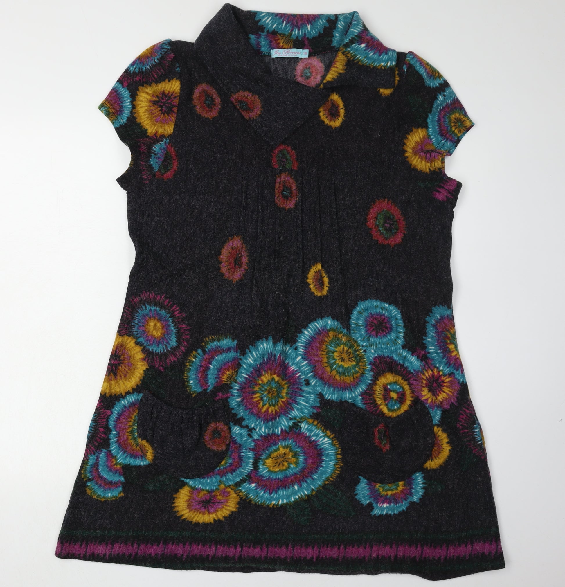 Step into effortless style with this vibrant Joe Browns women's dress in a striking multicoloured floral pattern. Designed for comfort and elegance, its shift style is perfect for any occasion, ensuring you turn heads wherever you go. Crafted from a blend of 80% polyester, 15% polyamide, and 5% elastane, the dress ensures a softly structured fit with just the right amount of stretch. The cap sleeves and collared neckline add a touch of sophistication, making it ideal for both casual and smart-casual settings. Perfect for the autumn and winter seasons, pair this dynamic piece with tights and boots for a chic layered look. Whether you’re dressing for a day at the office or a weekend lunch, this dress promises to be a versatile addition to your wardrobe. Offering maximum style with minimal effort, it's the go-to dress for any woman's collection, maximizing both convenience and style. Machine washable for easy care, it remains as fresh and captivating as the day you first wore it.