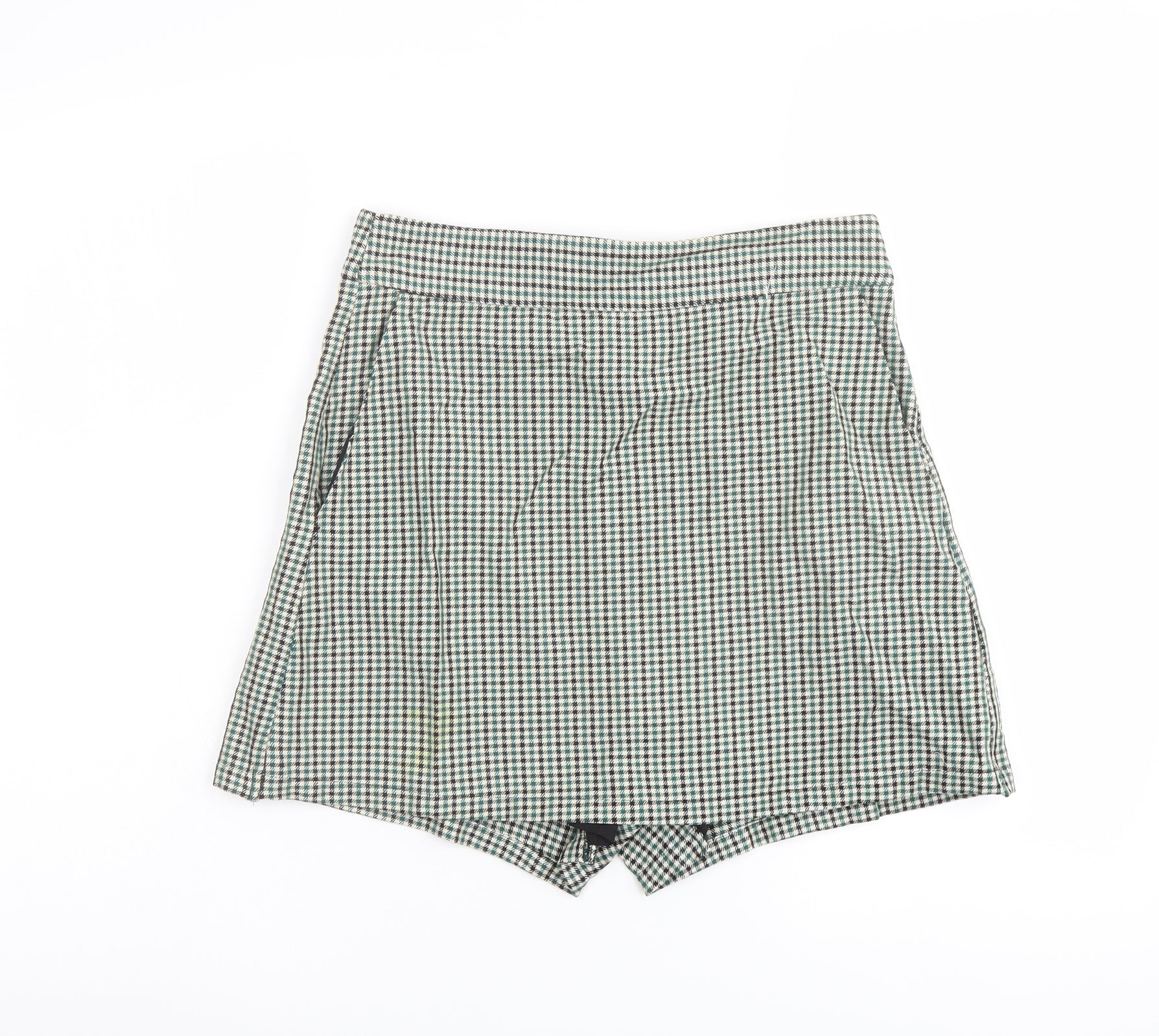 Womens Green Plaid Viscose Skort Size S L3 in Regular Zip