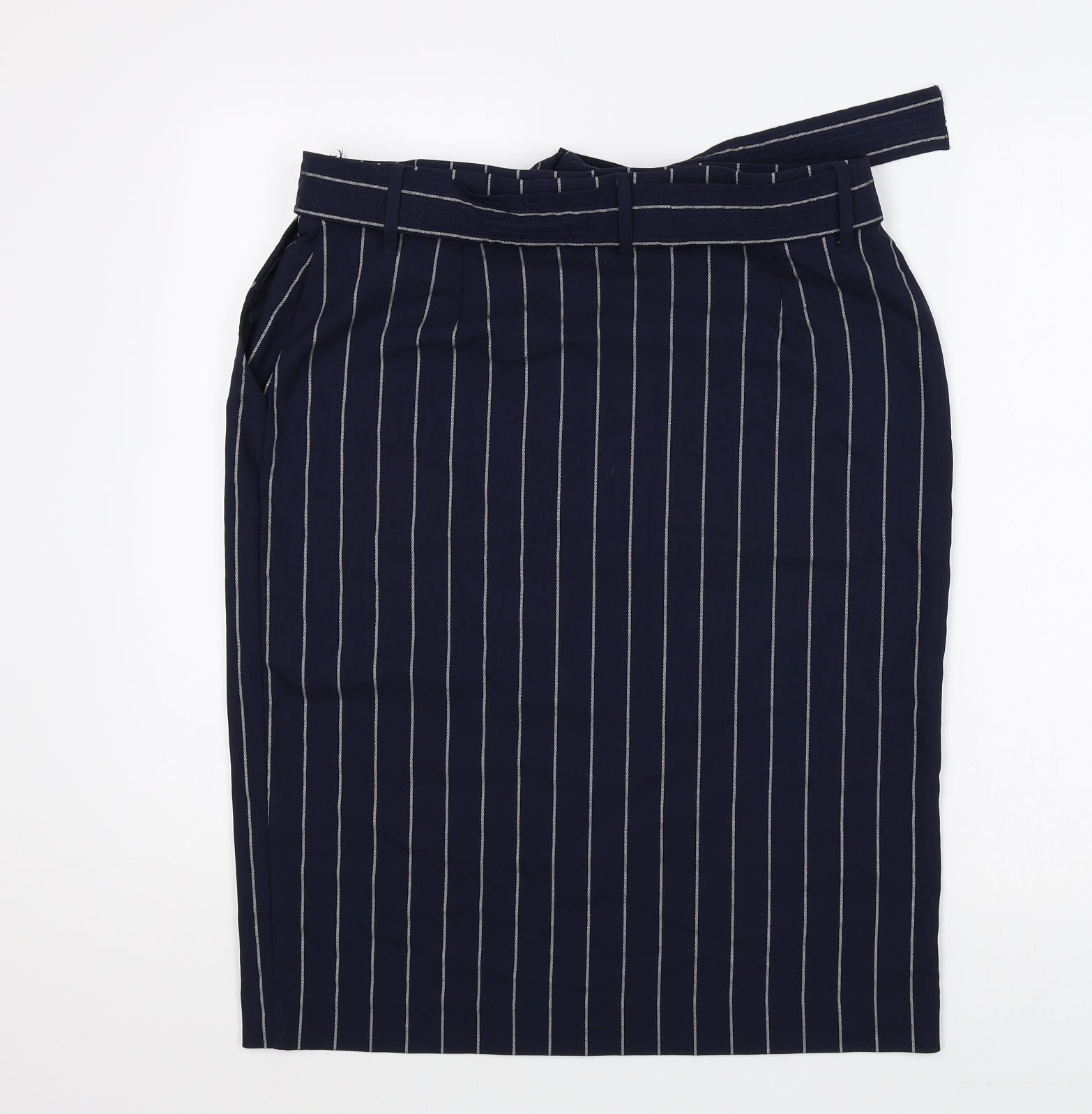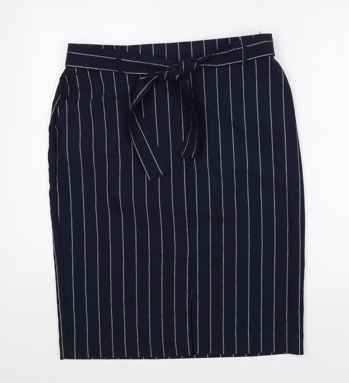 Womens Blue Striped Rayon Straight & Pencil Skirt Size L Tie