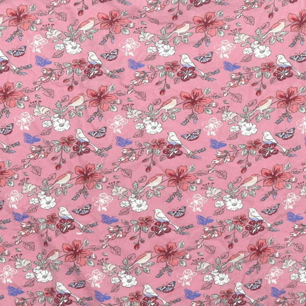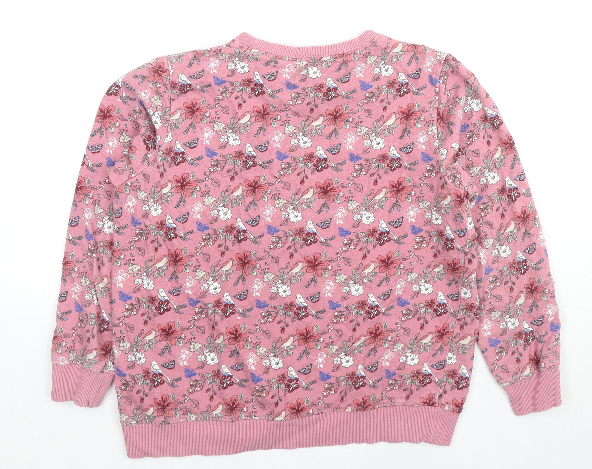 Womens Pink Floral Cotton Pullover Sweatshirt Size 12 Pullover - Birds