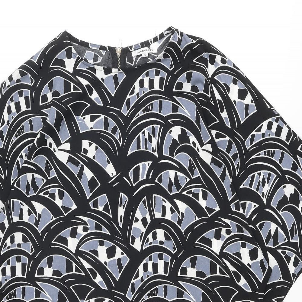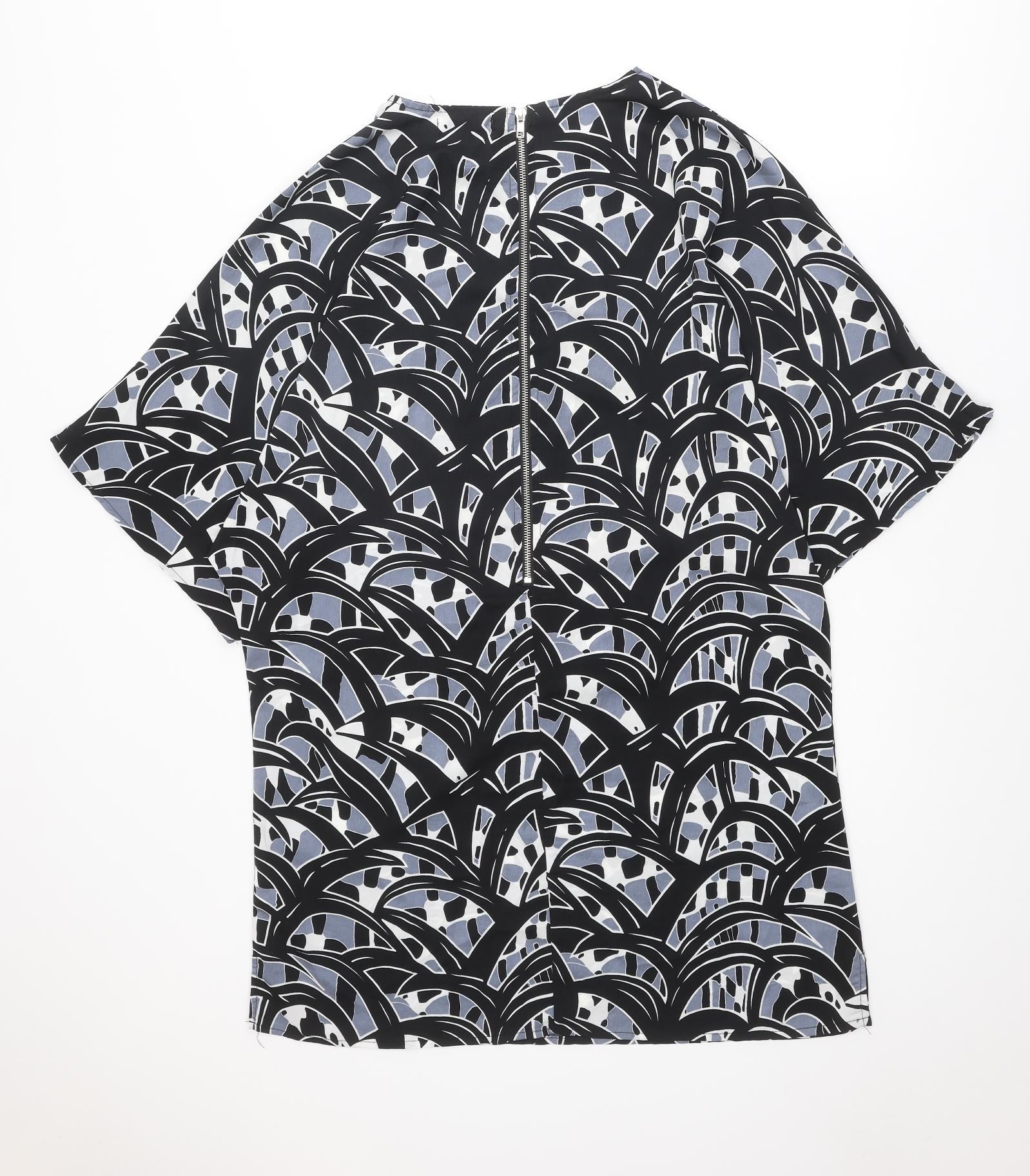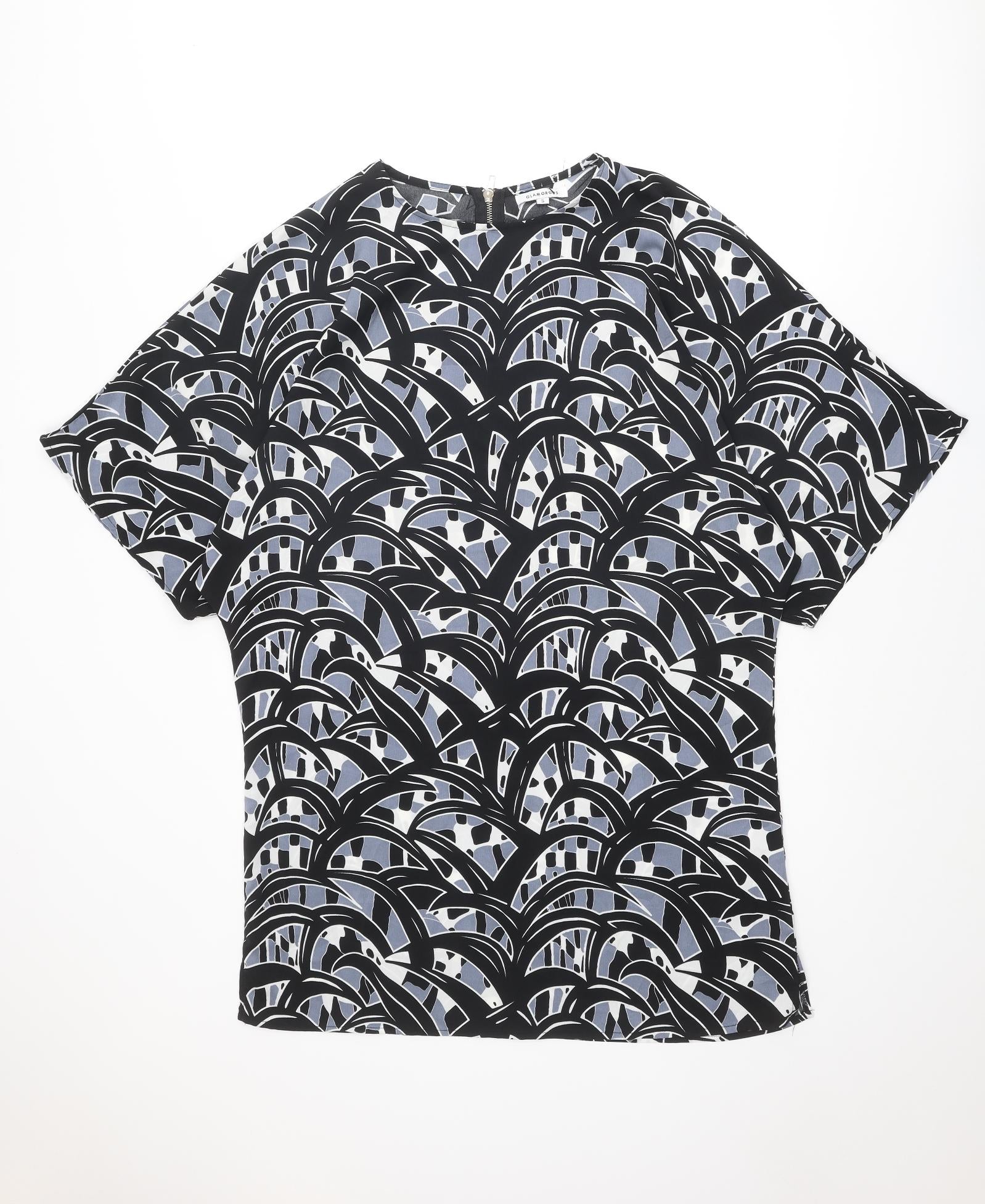 Womens Black Geometric Polyester T-Shirt Dress Size S Round Neck Zip