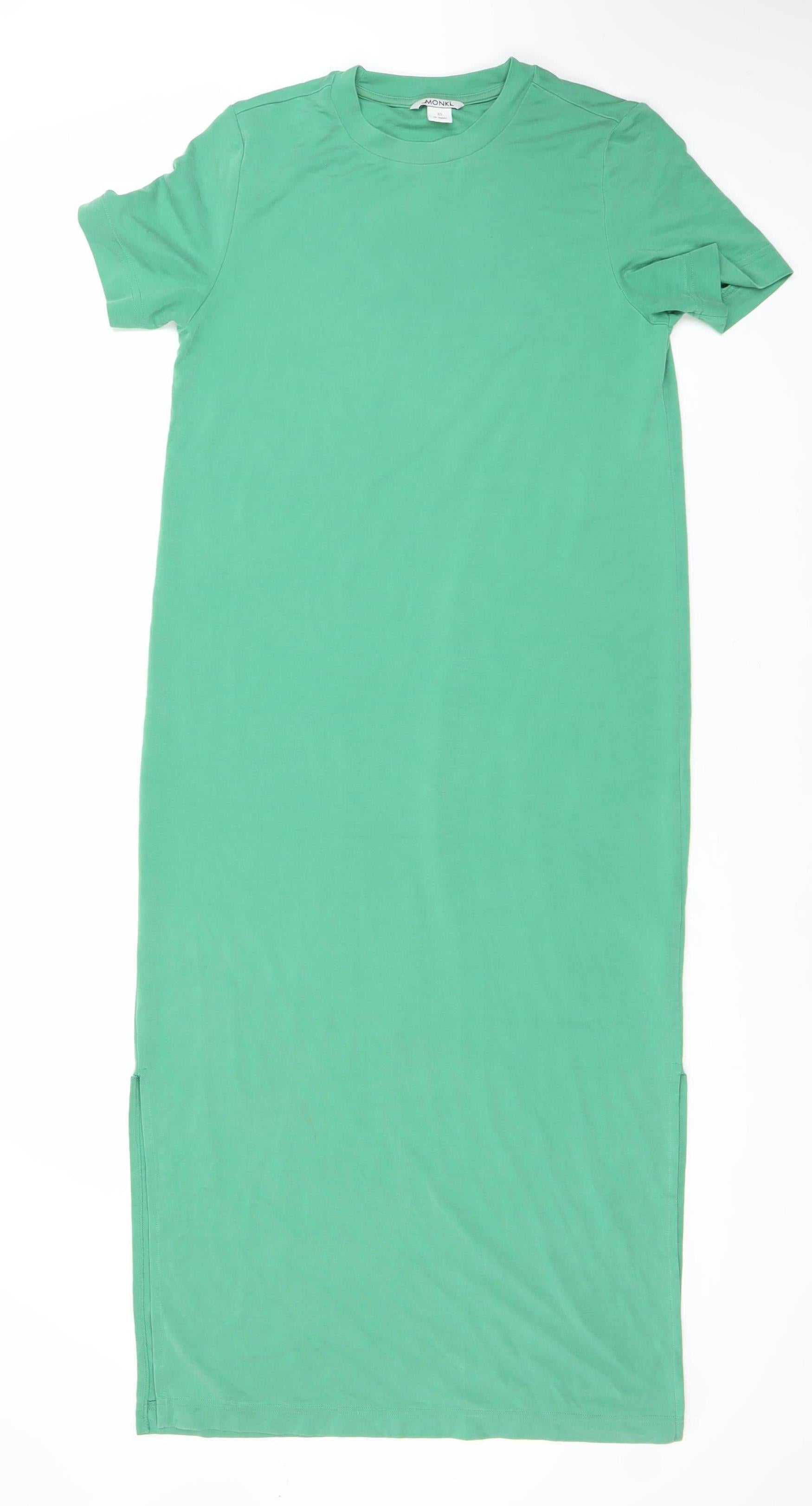 Embrace effortless style with this Monki women’s long green T-shirt dress, designed for casual charm and everyday comfort. Crafted with a blend of modal, polyester, and elastane, this dress offers a lightweight feel and a hint of stretch for the perfect fit. The pullover style with its classic round neckline makes dressing easy and relaxed, complementing its casual yet chic aesthetic. The short sleeves add a touch of ease that’s ideal for spring and summer wear. Perfect for weekend outings or leisurely days, its no-pattern design provides a minimalistic look that remains timeless. Whether heading to the park or enjoying a sunny afternoon with friends, this XS dress promises versatility and comfort. Machine washable for simple garment care, ensuring that you can enjoy this dress without any hassle. Add a staple piece to your collection with this easygoing yet stylish choice from Monki.
