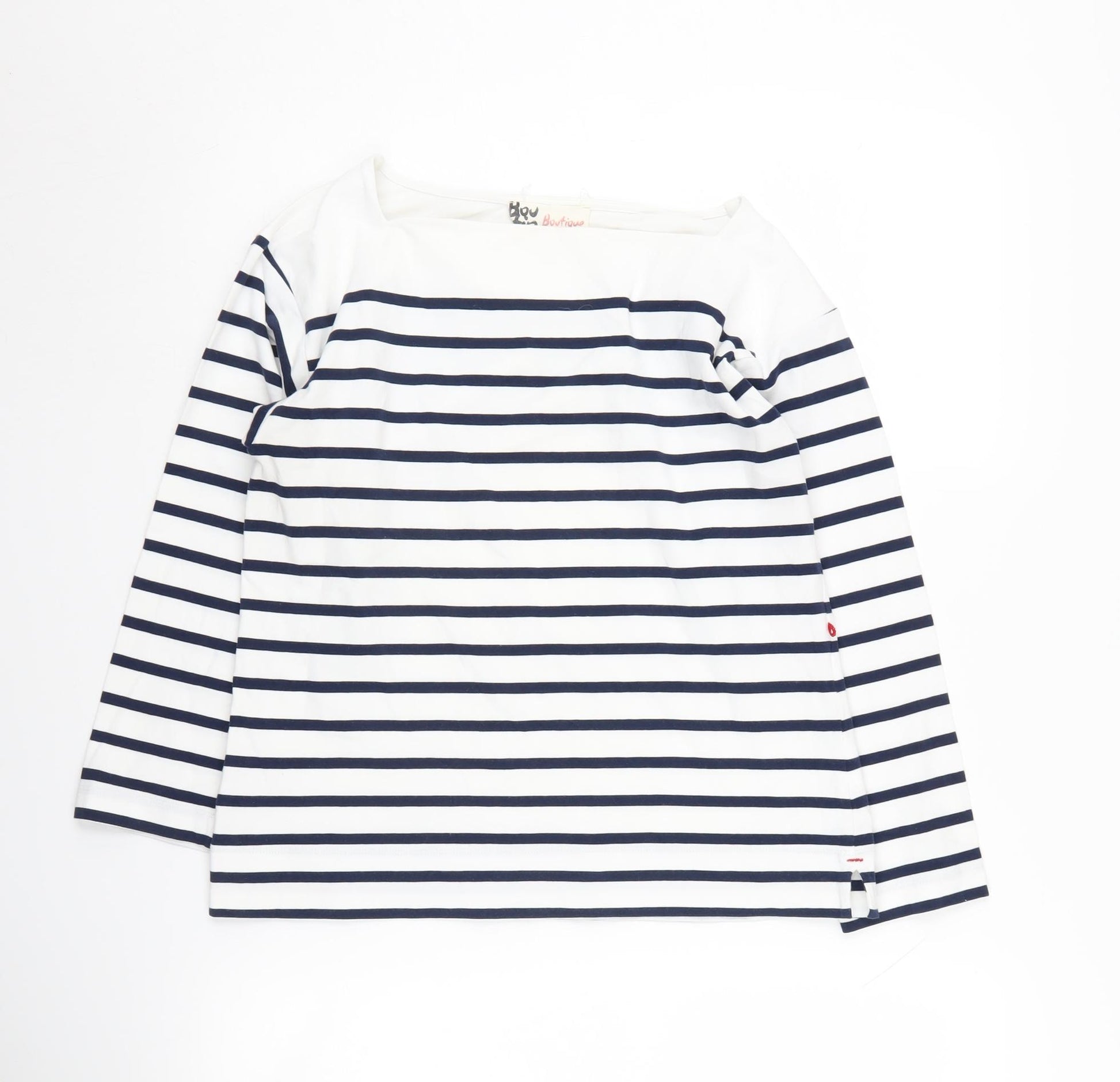 Elevate your casual wardrobe with this stylish striped T-shirt from Boutique by Jaeger. Designed for women who appreciate both comfort and style, this piece is crafted from a soft and breathable blend of 90% cotton and 10% elastane, offering a relaxed and flexible fit for everyday wear. The multicoloured stripes give it a timeless appeal, perfect for pairing with jeans or chinos. The long sleeves and boat neckline add a touch of elegance, making it a versatile pick for any casual occasion. Machine washable for easy care, this top really stands out as a practical yet fashionable choice. Ideal for those looking to infuse their ensembles with a bit of chic but casual sophistication, this T-shirt is the perfect addition to your seasonal wardrobe. Wear it in the cooler months or layer it for a fashionable autumn look. Despite being previously owned, it remains in excellent condition with no visible defects, ready to enhance your fashion collection. Secure this stylish staple today at a great price and enjoy the balance of classic style and modern comfort.