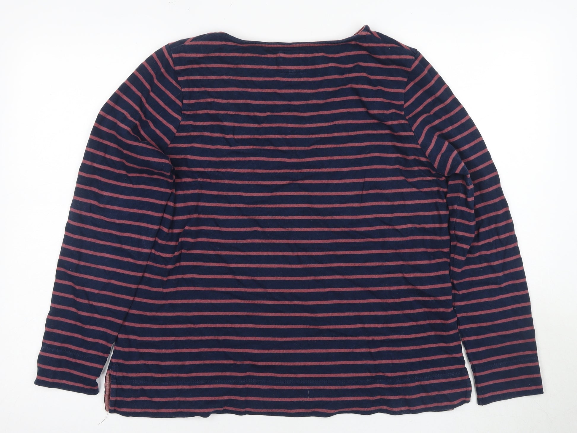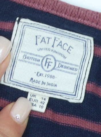 Add a touch of classic style to your wardrobe with this Fat Face women's striped T-shirt. Sized UK 14, this long-sleeve top is crafted from soft 100% cotton jersey, ensuring comfort and breathability for every season. The multicoloured stripes add a vibrant, playful element, while the crew neck offers a flattering frame. Designed for everyday casual wear, this T-shirt pairs easily with jeans or shorts, making it versatile for several occasions. Its regular fit and timeless pattern ensure it remains a staple you can return to again and again. Ideal for layering or as a standalone piece, the top is both practical and stylish, perfect for enhancing your casual wardrobe. Machine washable for easy care, this item is in good condition with only normal wear, providing enduring charm. Discover the effortless style and quality of Fat Face with this essential top.