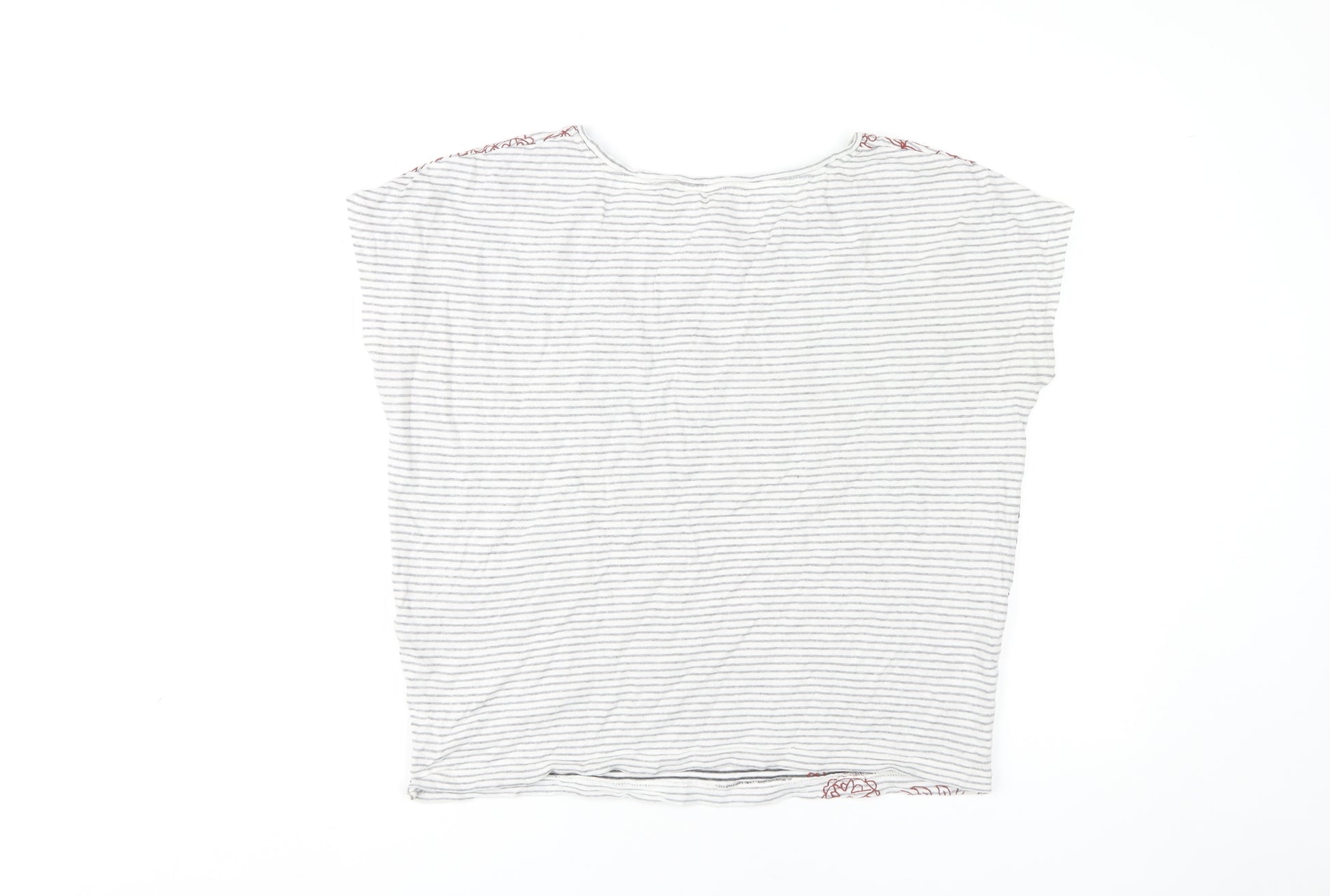 White Stuff Women's Grey Striped Long Sleeve Cotton Modal T-Shirt UK 12