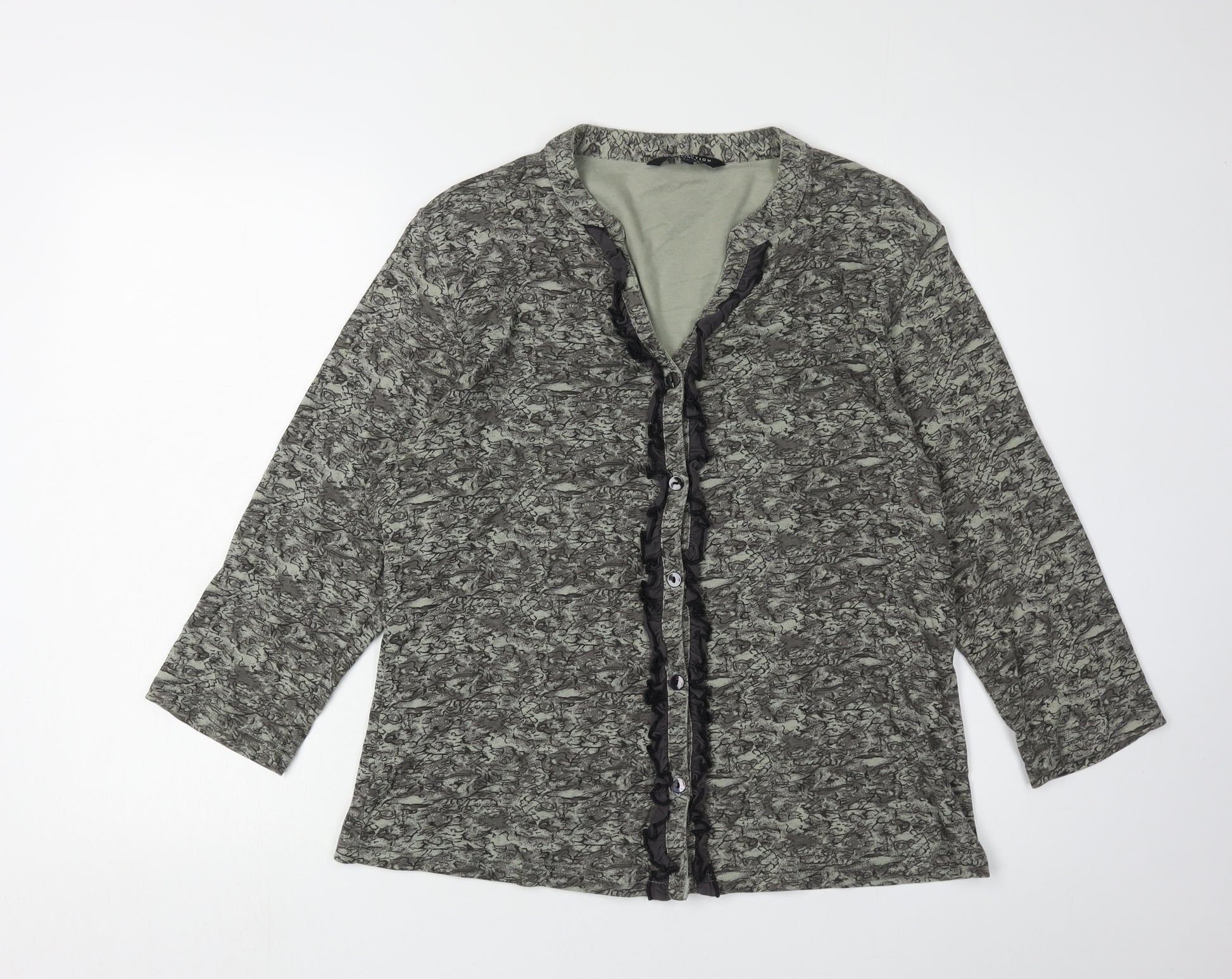 Discover timeless elegance with this exquisite Benhams blouse, designed to add sophistication to your wardrobe. Crafted from 100% cotton, this jersey fabric blouse ensures both comfort and style. The grey hue offers an understated, versatile look perfect for any casual occasion or social gathering. Featuring a classic V-neckline and long sleeves, this garment promises a flattering fit for women who appreciate quality and design. The blouse is accentuated with charming ruffles along the button closure, adding a touch of femininity and charm. Machine washable, this piece is practical for everyday wear, aligning with the Autumn and Winter seasons. Enjoy the ease of care and the premium feel of cotton against your skin. Beautifully crafted with attention to detail, this blouse ensures longevity and style in every wear. Perfect for those who admire subtle elegance and intrinsic style, this Benhams blouse is bound to become a favourite. A must-have for your wardrobe, this piece pairs seamlessly with both skirts and trousers, allowing you to create effortlessly chic ensembles. Don't miss out on elevating your wardrobe with this exceptional piece, offering both comfort and style.