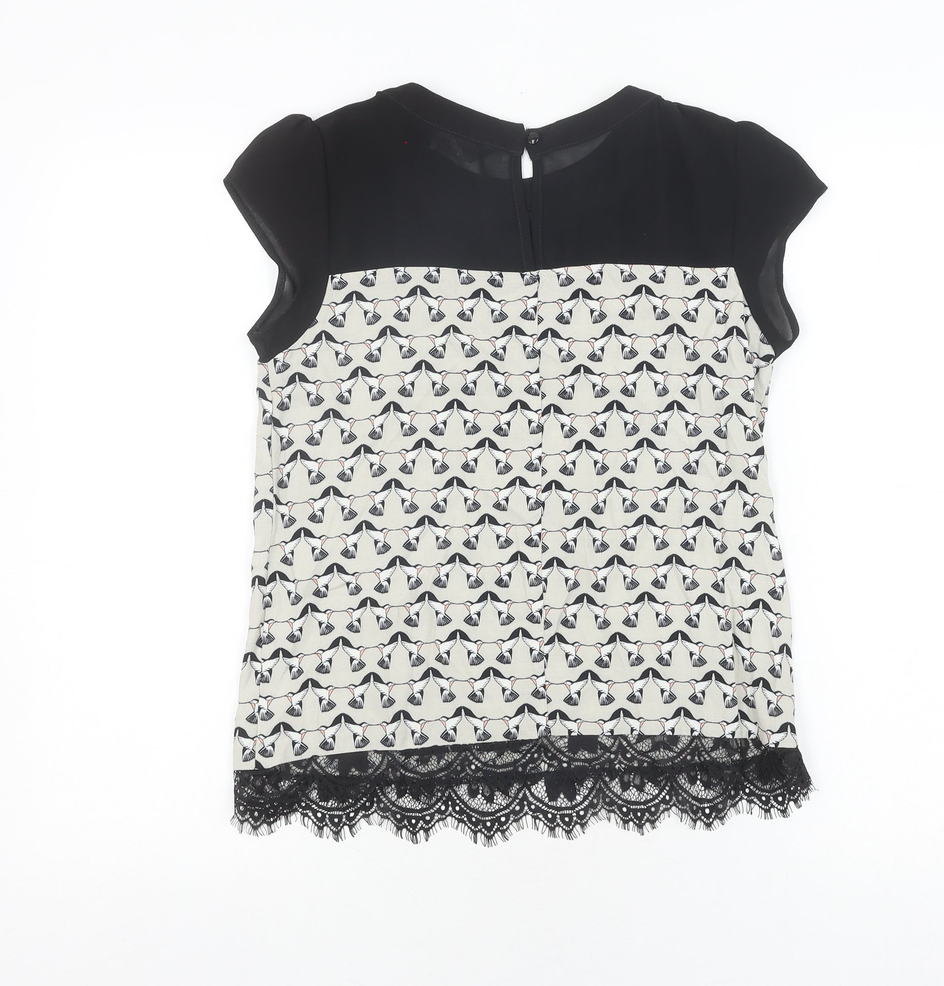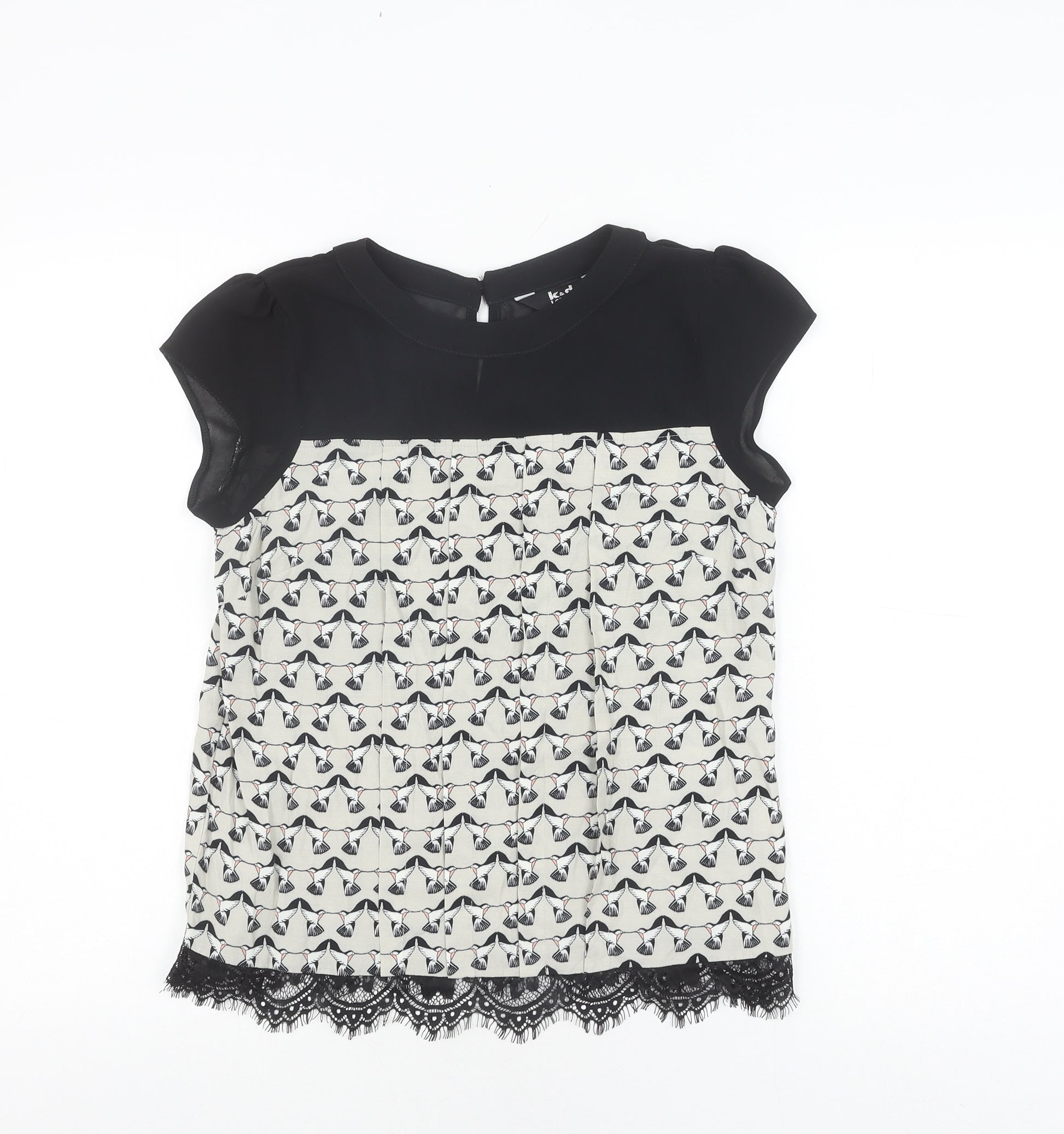 Oasis Women's Black Short Sleeve Square Neck Polyester Blouse UK 8
