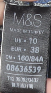 Discover timeless elegance with this Marks and Spencer Women's Blue Floral Blouse, perfect for adding a touch of sophistication to your wardrobe. Crafted from 100% polyester, this blouse not only promises durability but ensures a comfortable fit. Its long sleeves provide an extra layer of warmth for year-round wear, making it a versatile piece for both casual outings and more formal occasions. The floral pattern offers a charming aesthetic, effortlessly enhancing any ensemble with a splash of blue hues. Whether you're heading to the office or enjoying a weekend lunch, this blouse complements a variety of looks. Pair it with tailored trousers for professional appeal, or with jeans for a relaxed, yet chic, daytime appearance. Designed to fit a UK size 10, this blouse ensures a regular fit that maintains its shape and style wash after wash. Practical and easy to care for, simply machine wash to keep it looking fresh. A fantastic find for fashion-forward individuals, this blouse promises to be a staple in your wardrobe rotation, delivering on style and quality that Marks and Spencer is renowned for.