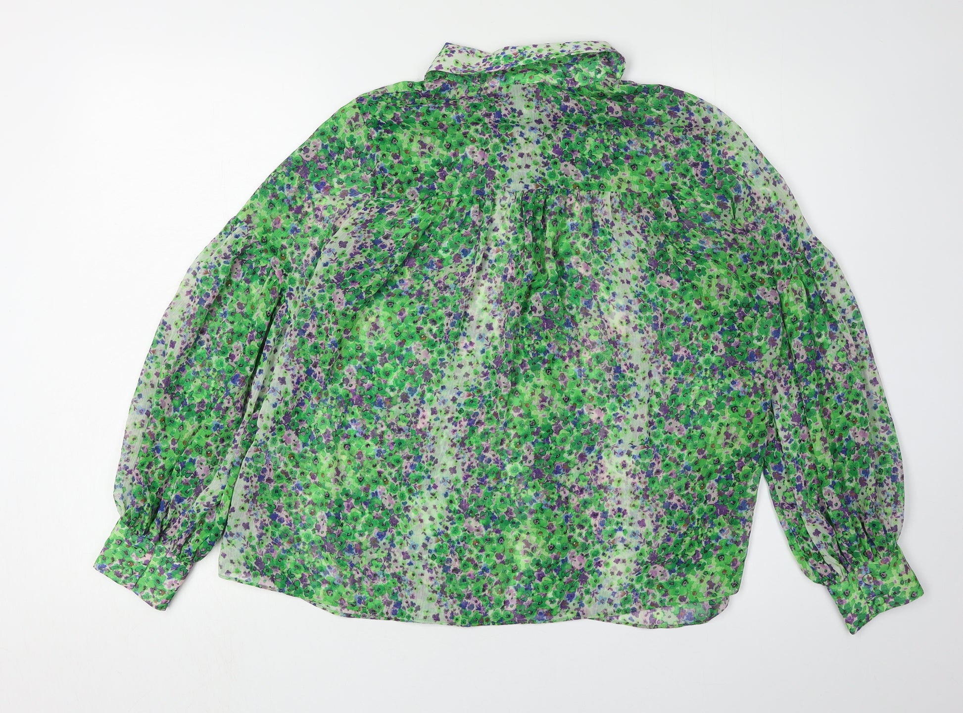 Discover timeless elegance with this River Island Women's Green Floral Blouse. Crafted to perfection, this stunning blouse features a vibrant green hue adorned with beautiful floral patterns, perfect for adding a splash of colour to your wardrobe. With its collared neckline and button closure, the blouse presents a classic yet chic style. The long sleeves provide a touch of sophistication, making it a versatile addition for various occasions. Made from high-quality woven polyester, it ensures both comfort and durability. This blouse is ideal for casual outings or smart-casual events, offering a harmonious blend of style and functionality. Whether you're stepping out for a casual day out or need something chic for an evening event, this River Island blouse offers versatility and fashion-forward flair. Pair it with your favourite jeans or a sleek skirt to complete the look. Embrace sophistication and style with this exquisite blouse that perfectly fits a size 8. It's machine washable for easy care and promises to keep you looking fresh and stylish all day long.