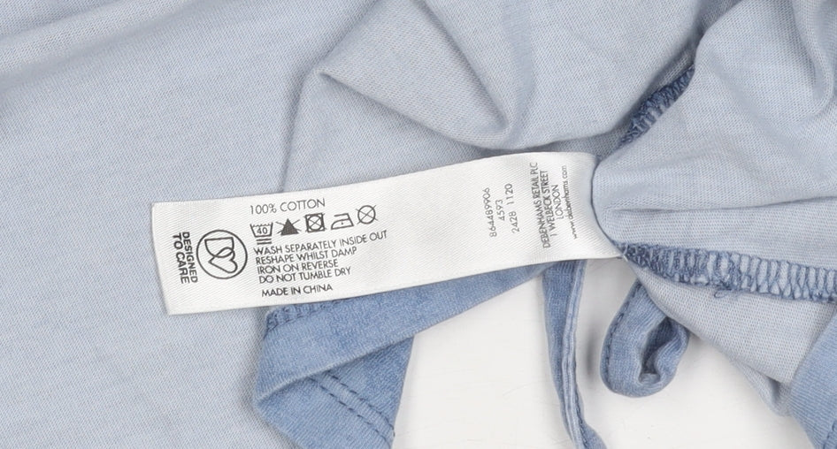 Discover this gorgeous Rocha John Rocha women's blue T-Shirt, perfect for any casual outing. Crafted from 100% cotton, this short-sleeved top promises a comfortable fit and breathability during warmer seasons like spring and summer. The enchanting scoop neck design offers a flattering frame to your neckline, while the delicate embroidered accents add an exquisite touch to its solid blue hue. Sized at UK 20, this piece is ideal for those seeking regular size fashion with a flair for elegance. With a pullover closure, it promises a fuss-free yet stylish addition to your wardrobe. Versatile and easy to care for, it is machine washable, ensuring it stays fresh and vibrant for every casual occasion. Whether pairing with jeans or a skirt, this T-shirt is a chic choice for your day-to-day look, boasting both style and comfort without compromise.