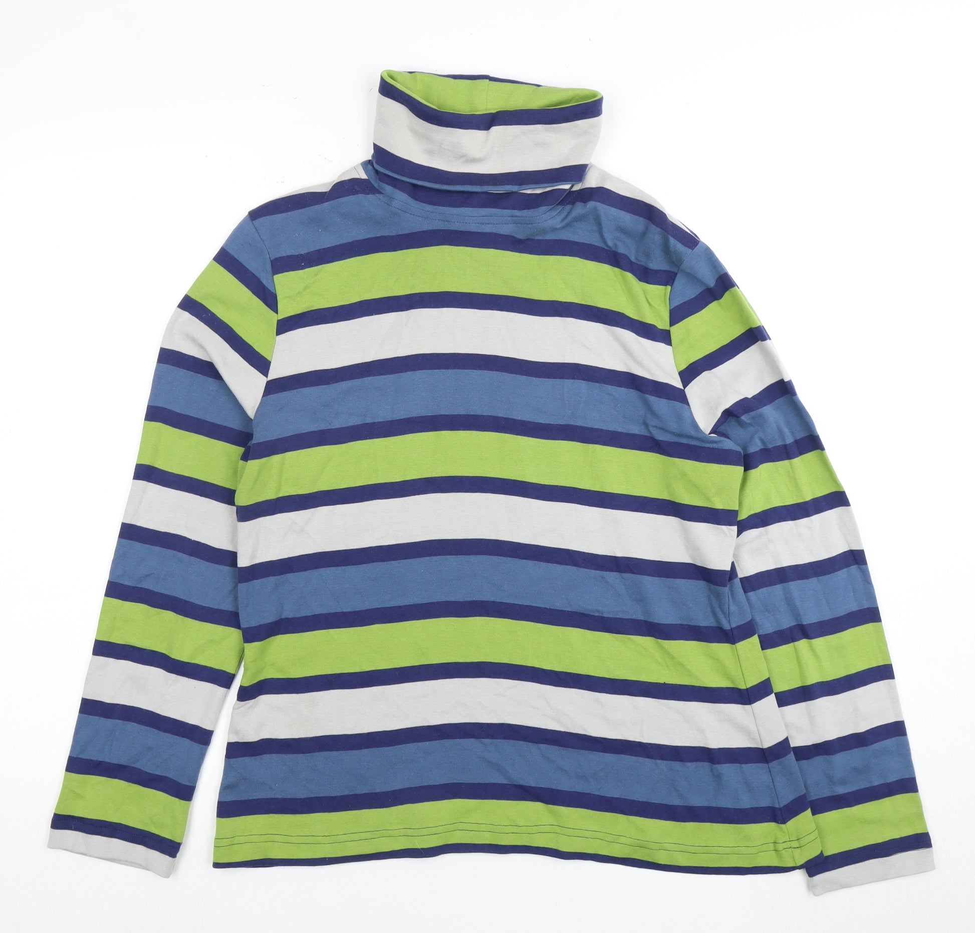 Elevate your wardrobe with this eye-catching multicoloured striped T-shirt from Tara Clothing, perfect for adding a pop of colour to any ensemble. Designed for women, this long sleeve T-shirt features a comfortable roll neck and is made from 100% cotton, offering durability and breathability. Ideal for casual occasions, this regular fit top ensures comfort and style throughout the day. Available in size L, it embraces a relaxed yet chic aesthetic suitable for all seasons. Don't miss the opportunity to refresh your basics with this versatile and vibrant piece.