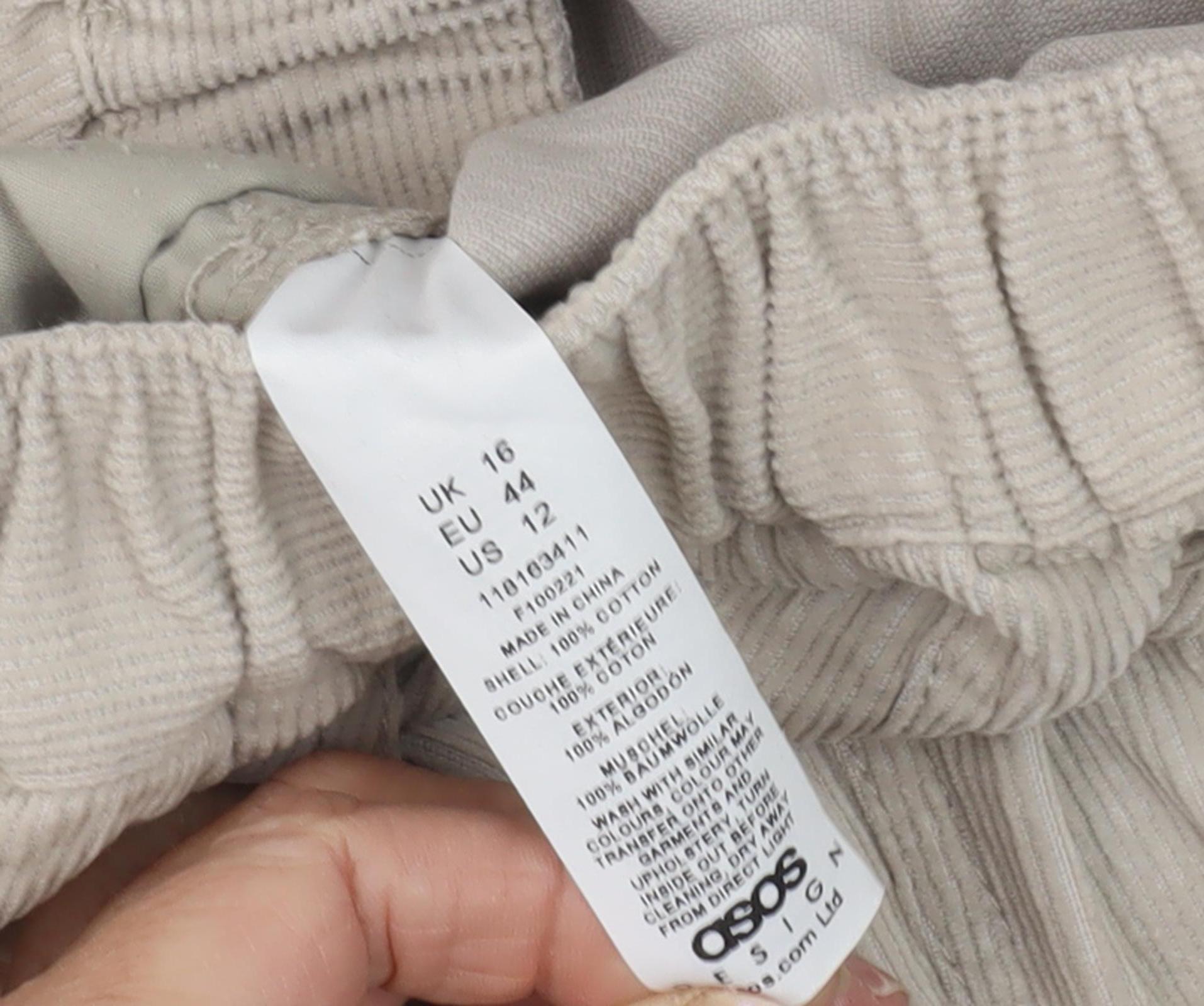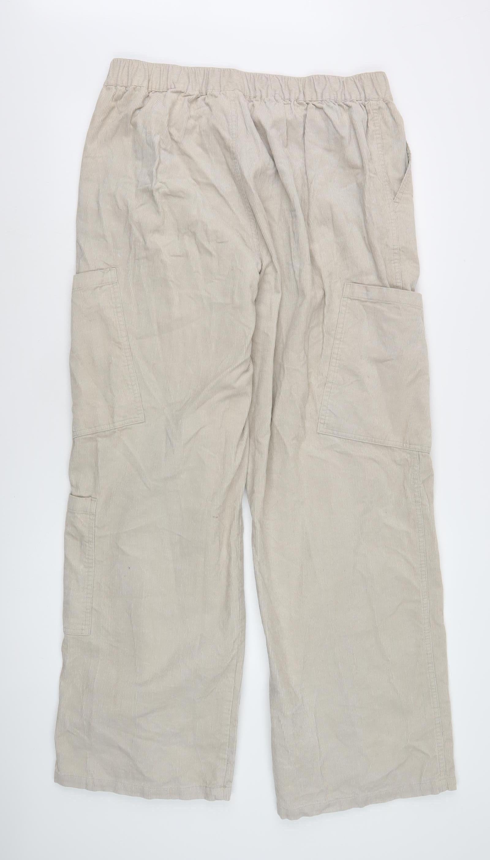 Discover comfort and style with these beige cargo trousers from ASOS, designed for the modern woman. Crafted from 100% cotton, these trousers offer a soft and breathable feel, perfect for casual outings in spring and summer. The relaxed fit and elastic waistband ensure maximum comfort, complementing the functional pockets that are ideal for carrying essentials. Featuring a classic button accent and a mid-rise design, they provide a flattering silhouette without compromising on ease. Great for casual occasions, these cargo trousers can be easily paired with your favourite tees or tops for a versatile look. Despite a light stain on the side, they remain in good condition, ready to become a staple in your wardrobe. Machine washable, they offer easy care for everyday wear.