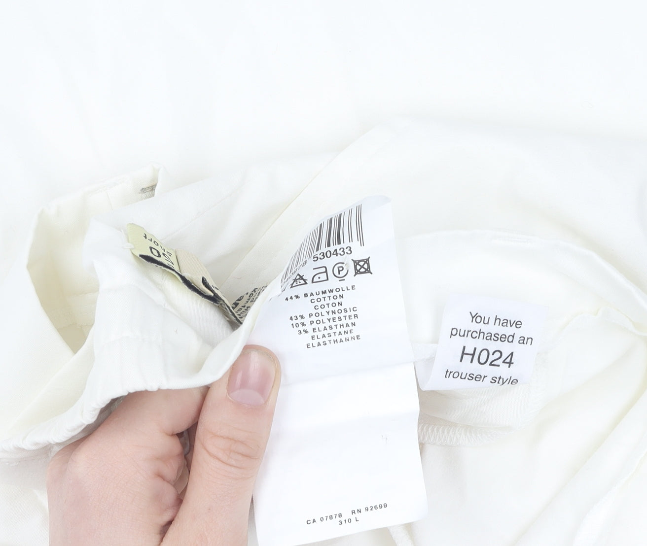 Introducing the Gardeur Women's White Trousers, a timeless addition to your wardrobe that effortlessly combines style and comfort. Expertly crafted for a flattering and sophisticated look, these trousers are designed to cater to the modern woman. With their elegant white colour and minimalist design, these trousers make a versatile choice for any occasion. The elastic waist ensures a comfortable fit, allowing you to move with ease throughout your day. Whether you're stepping out for a formal event or adding a touch of elegance to your casual ensemble, these trousers have you covered.Made from a high-quality blend of cotton, polyester, and elastane, these trousers promise durability and a soft touch against your skin. The absence of any bold patterns leaves room for creative pairings with your favourite tops, making these an essential piece for any wardrobe. The lack of a distinct leg style further adds to their versatile appeal, seamlessly transitioning from office wear to an evening out.Despite being in excellent condition with only minor creases visible, these trousers retain their refined look and feel, marking them as a staple in classic fashion. Upgrade your closet with this elegant piece and experience the unmatched quality and style of Gardeur. A perfect blend of practicality and chic, these trousers are the go-to choice for women who appreciate elegance without compromise.