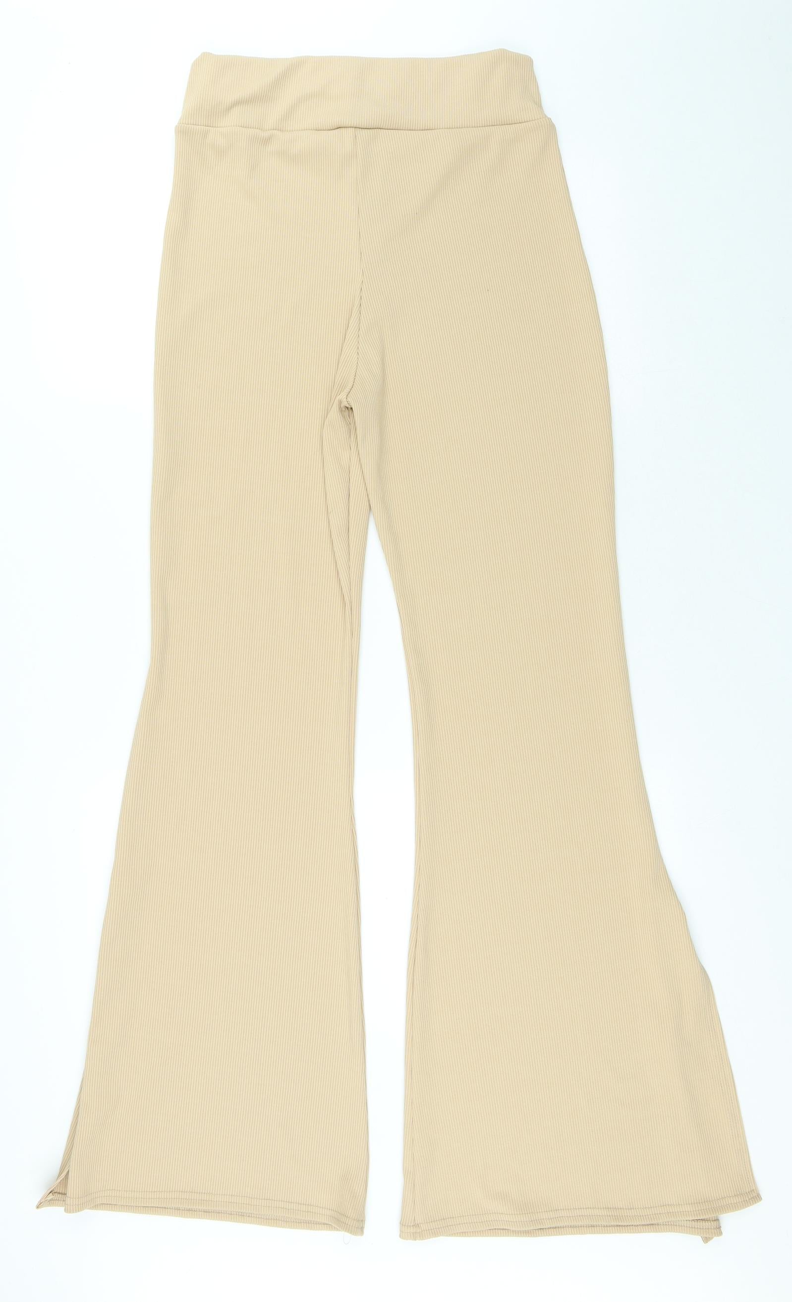 Womens Beige Polyester Trousers Size 14 L33 in Regular