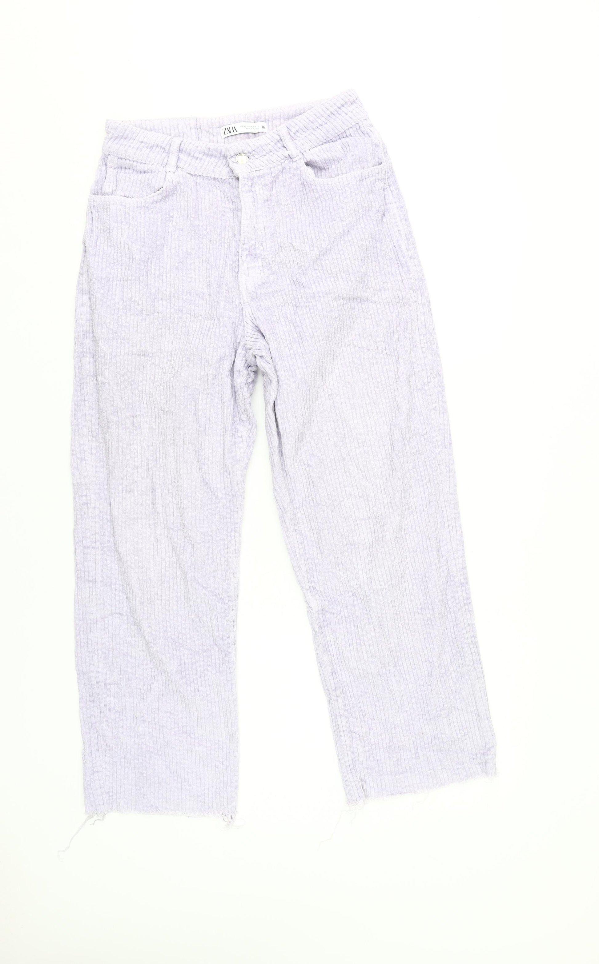 Embrace classic style with these Zara women's trousers in a chic ivory hue. Perfectly suited for casual occasions, these trousers offer a flattering mid-rise fit with a straight leg style that elongates your silhouette. Made from 100% cotton corduroy, these trousers provide a balance of comfort and durability, making them an excellent addition to your wardrobe. Ideal for any season, they can be effortlessly paired with various tops for a versatile look. Featuring a simple button closure, these trousers maintain a streamlined appearance suited for everyday wear. Whether you're heading to a casual meeting or enjoying a relaxed day out, these trousers can easily adapt to your style needs. Their excellent condition ensures you’ll look polished every time you wear them. Add a touch of simplicity and elegance to your collection with these Zara trousers, perfect for any fashion-forward woman looking to enhance her ensemble.