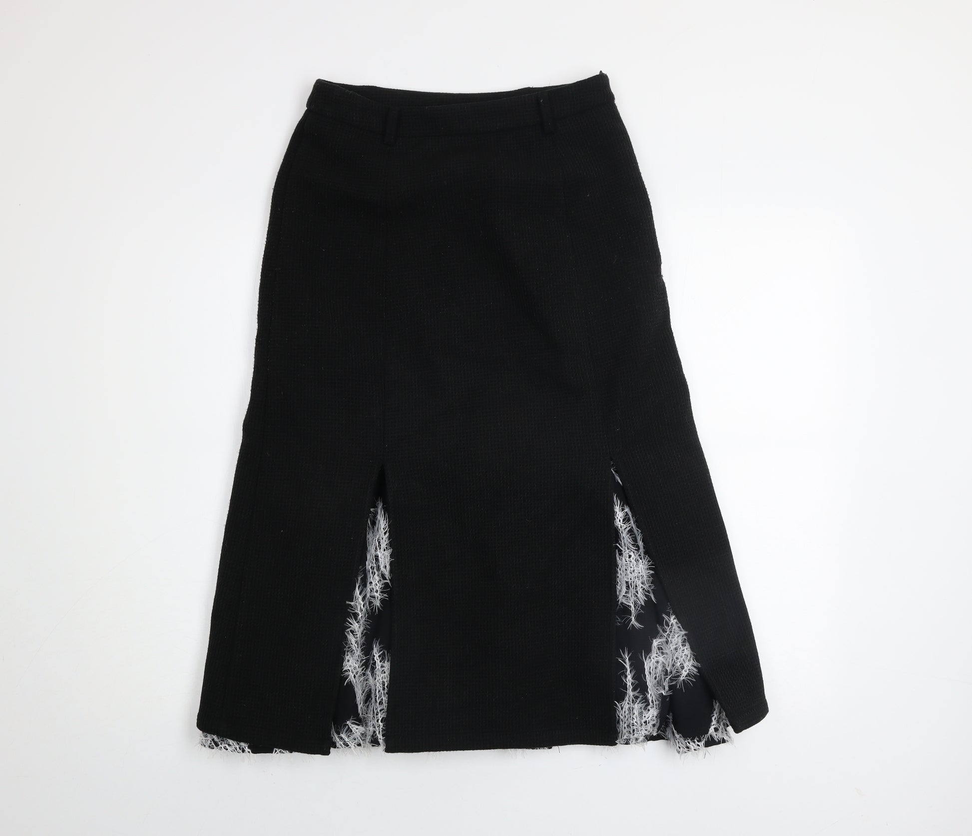 Womens Black Midi Trumpet Skirt M Tweed Fringe Detail