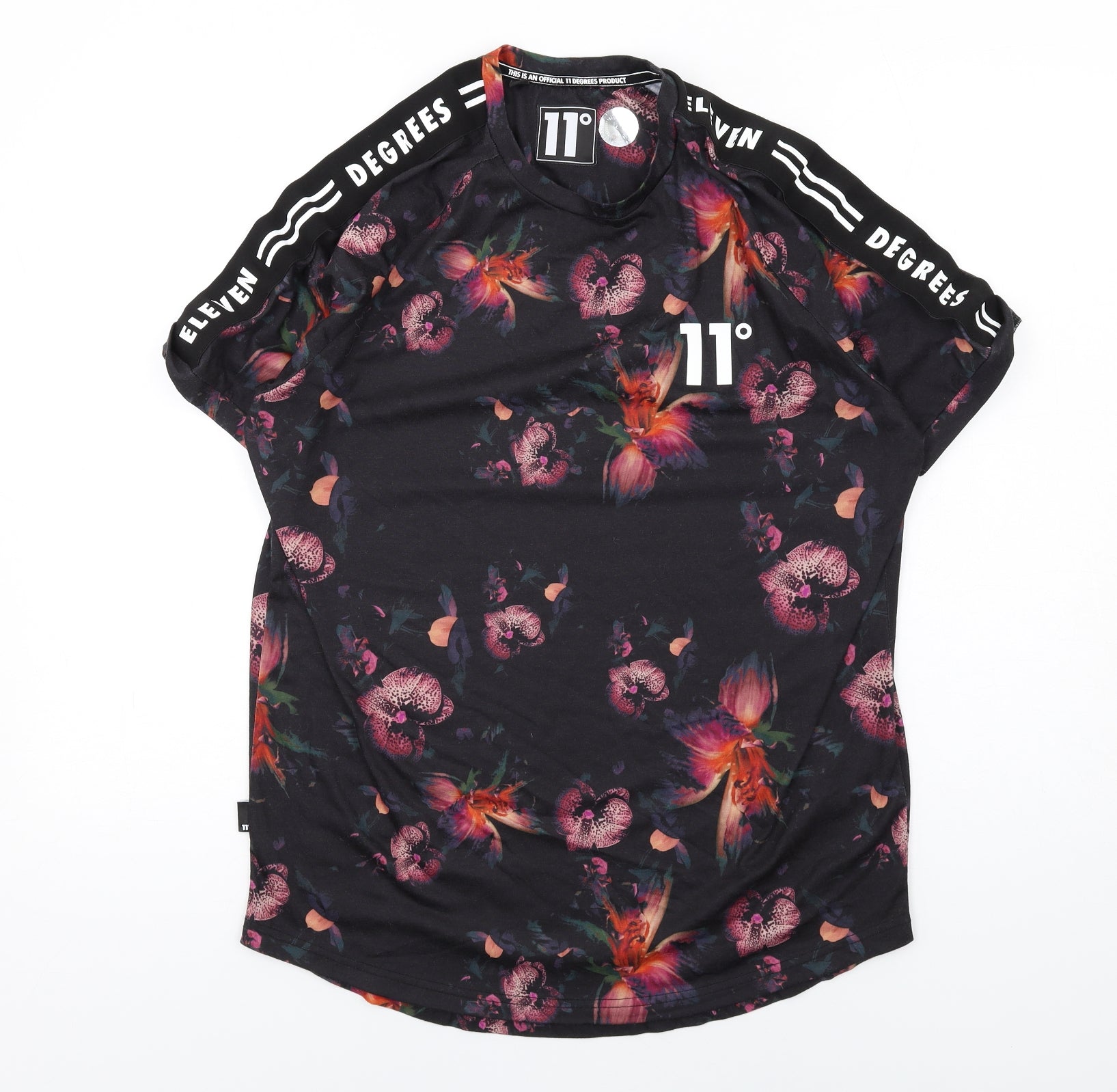 Mens Multicoloured Floral Polyester T-Shirt Size L Crew Neck