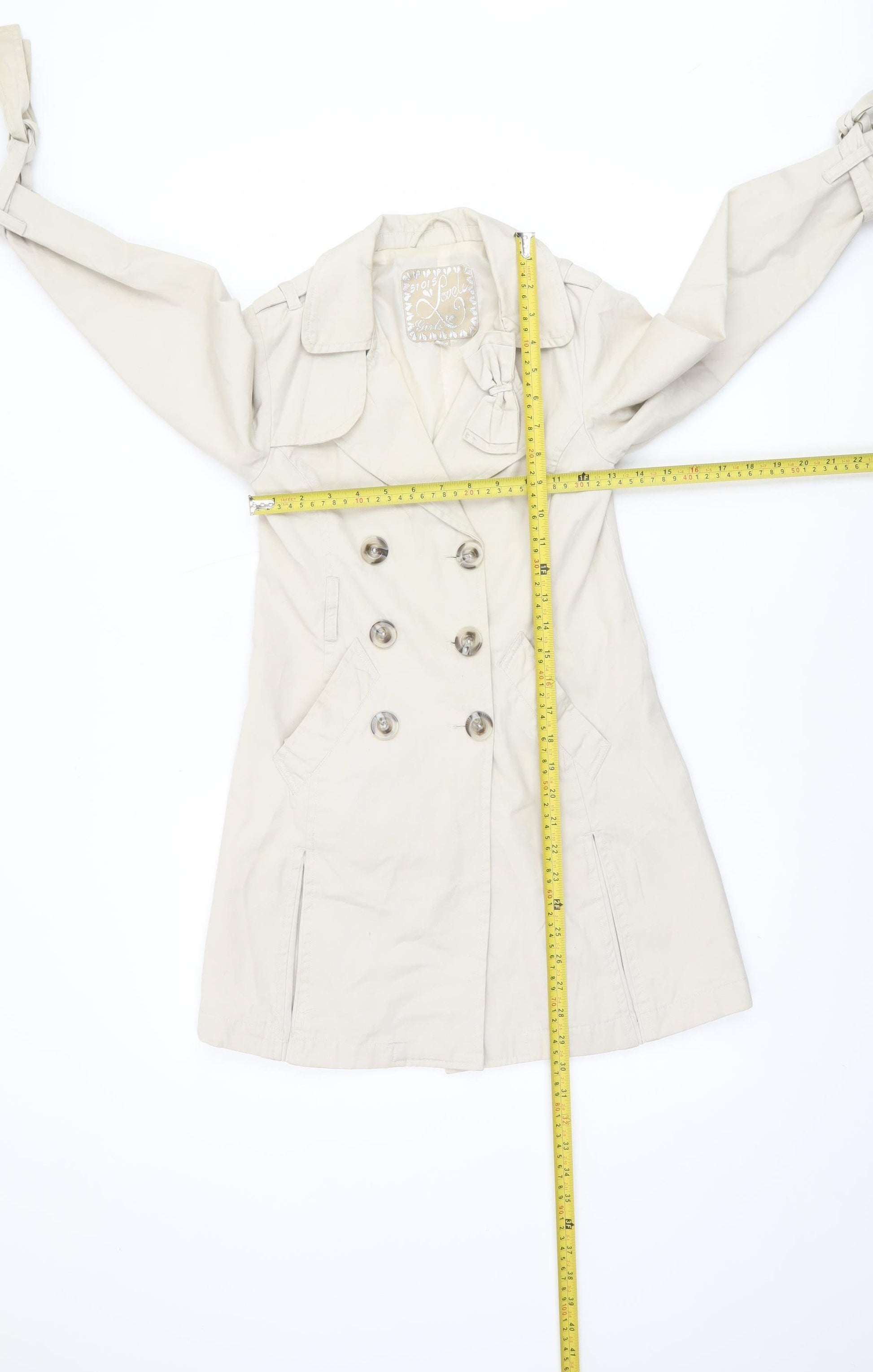 Girls Beige Trench Coat 9 Years Double-Breasted Mid-Length