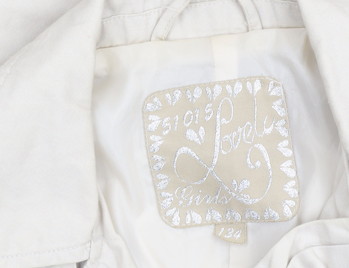 Elevate her outerwear collection with this charming 51015 Lovely trench coat for girls. Designed in a timeless beige shade, this coat combines classic style with practicality, making it an essential piece for both transitional and cooler months. Crafted from 100% cotton, the smooth twill fabric offers breathability and comfort, while the fully lined 100% polyester interior provides a soft, premium feel against the skin. The mid-length cut and tailored fit flatter the silhouette, offering a stylishly structured shape that’s perfect for layering over school uniforms or weekend outfits.The double-breasted front, belted cuffs, and tie waistband bring traditional trench detailing, while the practical side pockets add everyday functionality. The button closure ensures a secure fit, and the subtle tone-on-tone stitching enhances its smart, polished look. Perfect for spring or autumn weather, this versatile coat pairs effortlessly with casual or dressy ensembles. Designed for style and durability, it’s ideal for both special outings and daily wear.Condition is rated as excellent, with only minimal signs of previous use and no visible flaws. Although the original sales tags are not included, this coat retains a well-cared-for appearance throughout. Finished in a neutral beige that coordinates beautifully with any colour palette, this piece offers enduring appeal that girls will love to wear season after season.A lovely addition to every girl’s wardrobe, the 51015 Lovely trench coat brings together timeless fashion and practical design at an affordable price. Treat her to this quality piece that promises to keep her looking smart, comfortable, and effortlessly stylish all year round.