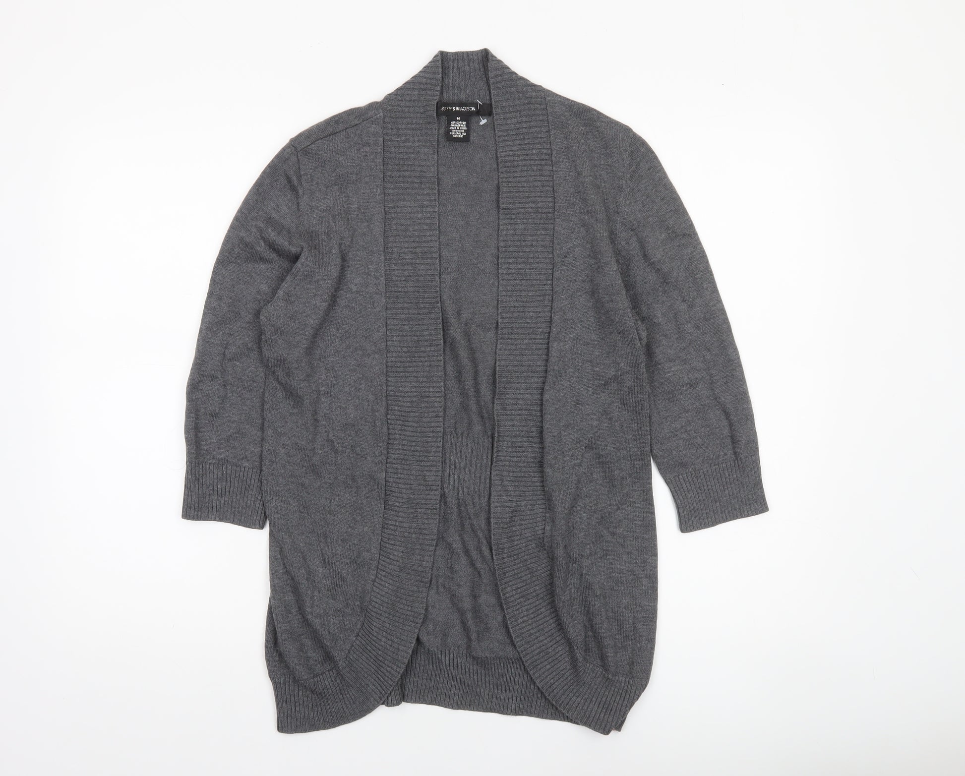 Women's Grey Knit Open Cardigan M 3/4 Sleeve