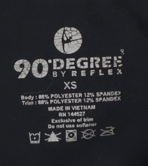 Discover the perfect combination of style and comfort with these women's black leggings from 90 Degree by Reflex. Designed for activewear, these leggings are perfect for gym sessions, yoga, or casual outings, offering a slim fit that flatters every body type. Made from a blend of 88% polyester and 12% elastane, the leggings are lightweight and stretchy, ensuring maximum flexibility and ease of movement. The elastic waist provides a comfortable fit, making these leggings an ideal choice for all-day wear. Machine washable for easy care, they come in an XS size, tailored for women who appreciate both fashion and functionality. Despite being pre-owned, the leggings are in excellent condition, with some lint visible as the only minor sign of wear. Embrace the versatility of the black colour, allowing you to pair them effortlessly with a variety of tops and shoes for different looks. Whether you're hitting the gym, going for a run, or simply running errands, these leggings are set to become your go-to piece for a stylish and comfortable wardrobe.
