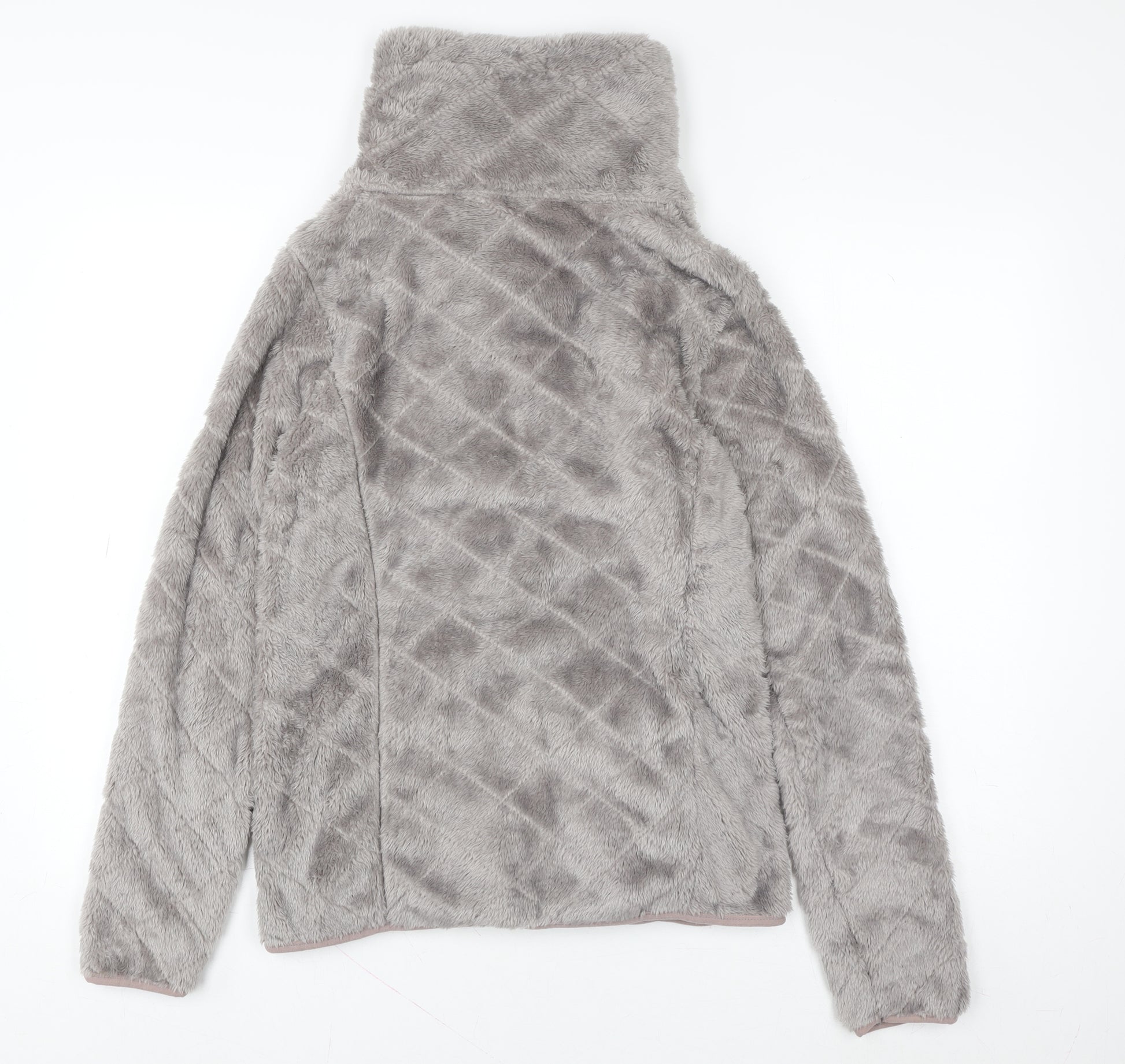 Stay effortlessly stylish and snug in this 9th Avenue women’s grey fleece jacket, designed for comfort and casual elegance. Crafted entirely from soft 100% polyester, this piece features a plush faux-fur texture that feels warm and cosy against the skin, perfect for chilly days during autumn and winter. The jacket comes in a flattering regular fit with long sleeves and a functional full-zip front closure, giving you the flexibility to wear it open or zipped up depending on the weather. Its high collar with drawstring detail adds a modern touch while keeping you protected from the cold breeze. The mid-length cut offers good coverage without sacrificing movement, making it ideal for layering over t-shirts, knitwear, or light tops. Thoughtfully styled with side pockets for practicality, this versatile jacket effortlessly bridges loungewear comfort and casual day-out style. The soft grey colour pairs beautifully with jeans, leggings, or casual trousers, making it an easy wardrobe favourite. Machine washable for convenient care, it’s perfect for daily wear or travel. In excellent pre-owned condition with minimal signs of use, this jacket retains its softness and shape, reflecting quality craftsmanship. Whether you're heading out for a casual stroll, working from home, or meeting friends at a café, the 9th Avenue fleece jacket provides both cosy warmth and understated chic. Priced competitively to reflect its excellent condition, this lovely piece combines affordability, comfort, and style—making it an ideal addition to your seasonal outerwear collection.