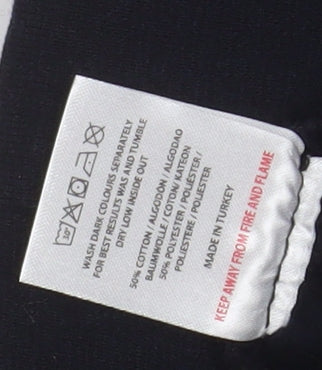 Upgrade your casual and athletic wardrobe with these stylish black jogger trousers from A London. Designed for men in a size small, these joggers combine everyday comfort with modern style. Crafted from a soft and durable blend of 50% cotton and 50% polyester, they offer breathability and ease of movement while maintaining shape and comfort through various activities. Featuring a regular fit with a tapered leg cut, these trousers provide a flattering silhouette that sits comfortably at the waist with an adjustable drawstring for a secure fit. The elasticated waistband and ankle cuffs add classic jogger detailing, while the front zip pockets offer practicality and sleek styling, ideal for securely holding your essentials whether you’re running errands, working out, or lounging. Their solid black colour makes them versatile enough to pair with any top, from T-shirts to hoodies, easily transitioning from gym to streetwear. Designed for performance and everyday wear, these joggers are machine washable for easy care and suitable for cooler seasons such as autumn, spring, and winter. The joggers retain a casual yet sporty aesthetic, perfect for gym, walking, running, or relaxed weekends. Made in Turkey, their fine construction ensures reliable quality and comfort. Condition is excellent with minimal signs of previous use and no visible damage, making them a superb value purchase for anyone looking for quality activewear. These A London jogger trousers embody classic modern style and practical comfort, a must-have staple for any man’s wardrobe seeking versatility, softness, and a confident casual look at an affordable price.