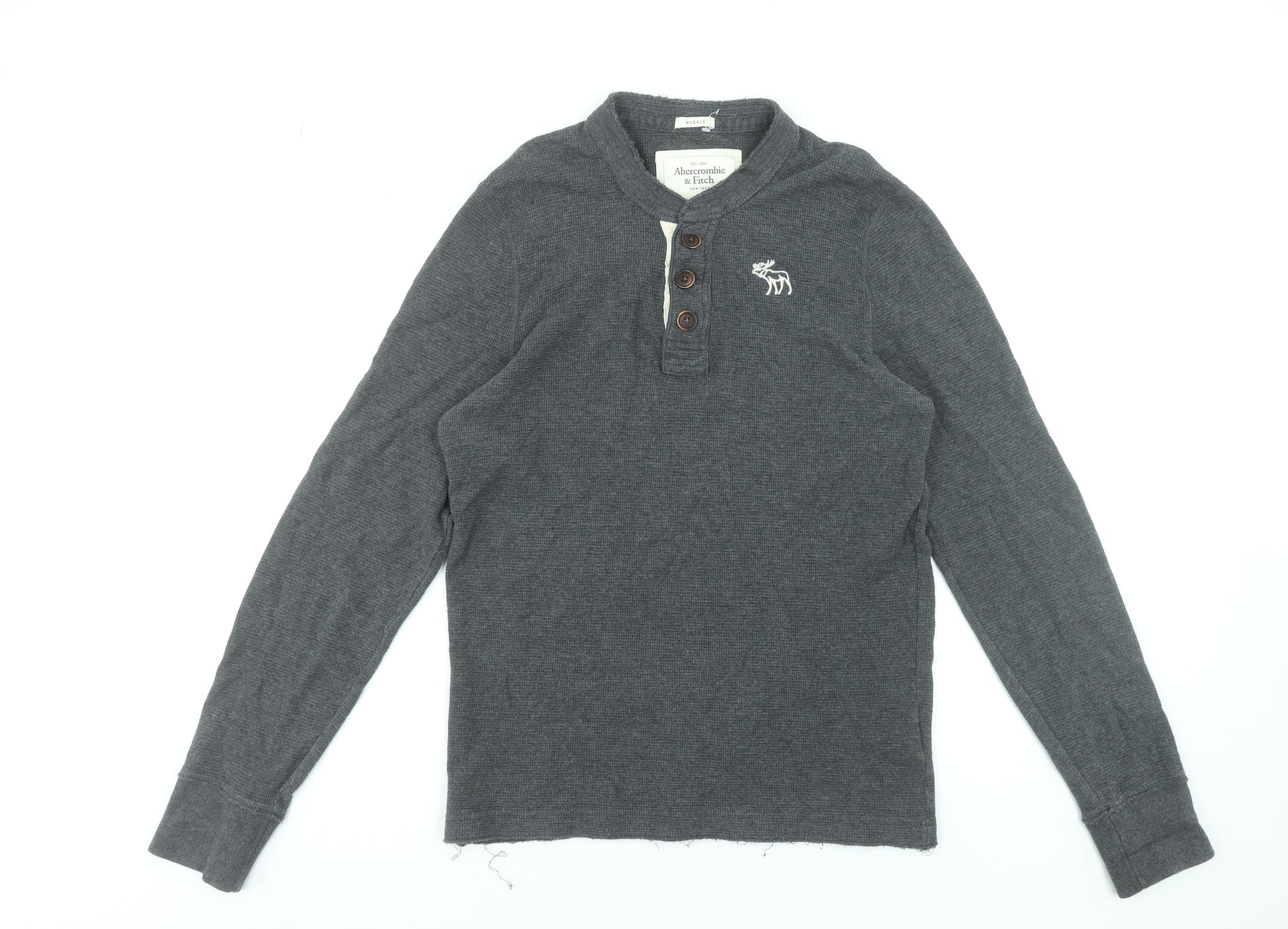 This Abercrombie & Fitch men's long sleeve Henley T-shirt is a timeless wardrobe essential designed for comfort and casual style. Crafted from 100% cotton, the soft knit fabric lends a breathable and lightweight feel, making it ideal for layering or wearing on its own in cooler seasons such as autumn or spring. Presented in a versatile grey shade, this shirt pairs effortlessly with jeans, chinos, or joggers for a relaxed yet stylish look. The Henley neckline with three-button placket offers a touch of classic rugged charm, while the embroidered Abercrombie & Fitch moose logo adds a signature heritage detail on the chest. The regular fit ensures a comfortable silhouette that suits a range of body types without feeling restrictive. Designed for ease of wear, this shirt’s simplicity makes it suitable for everyday activities—whether lounging at home, heading out for casual gatherings, or layering under outerwear for city strolls. Made in Vietnam to Abercrombie & Fitch’s high-quality standards, it reflects the brand’s longstanding reputation for well-crafted basics since 1892. While pre-owned, it remains in very good condition with only minor fraying at the hem, demonstrating light wear without any major defects. The clean, minimalist design ensures this piece remains a versatile staple within any modern wardrobe. Perfect for those who appreciate understated fashion with a premium feel, this long sleeve Henley tee is both practical and stylish. Machine washable and easy to care for, it’s a reliable addition to your everyday wear. Ideal for cooler seasons, its durability and soft cotton construction provide comfort and ease every time you wear it. A quality piece for the man who values both comfort and effortless style.