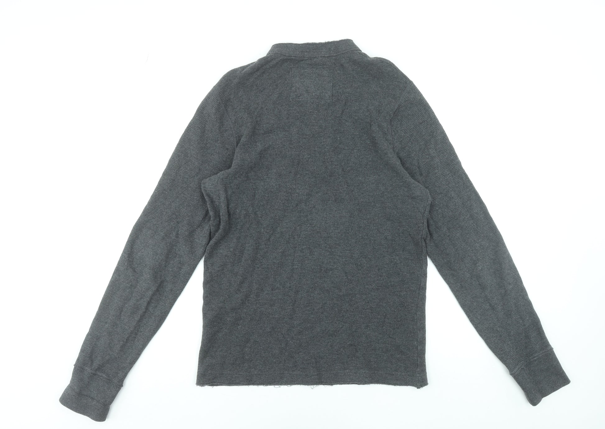 Men’s Grey Long Sleeve Henley T-Shirt Size L