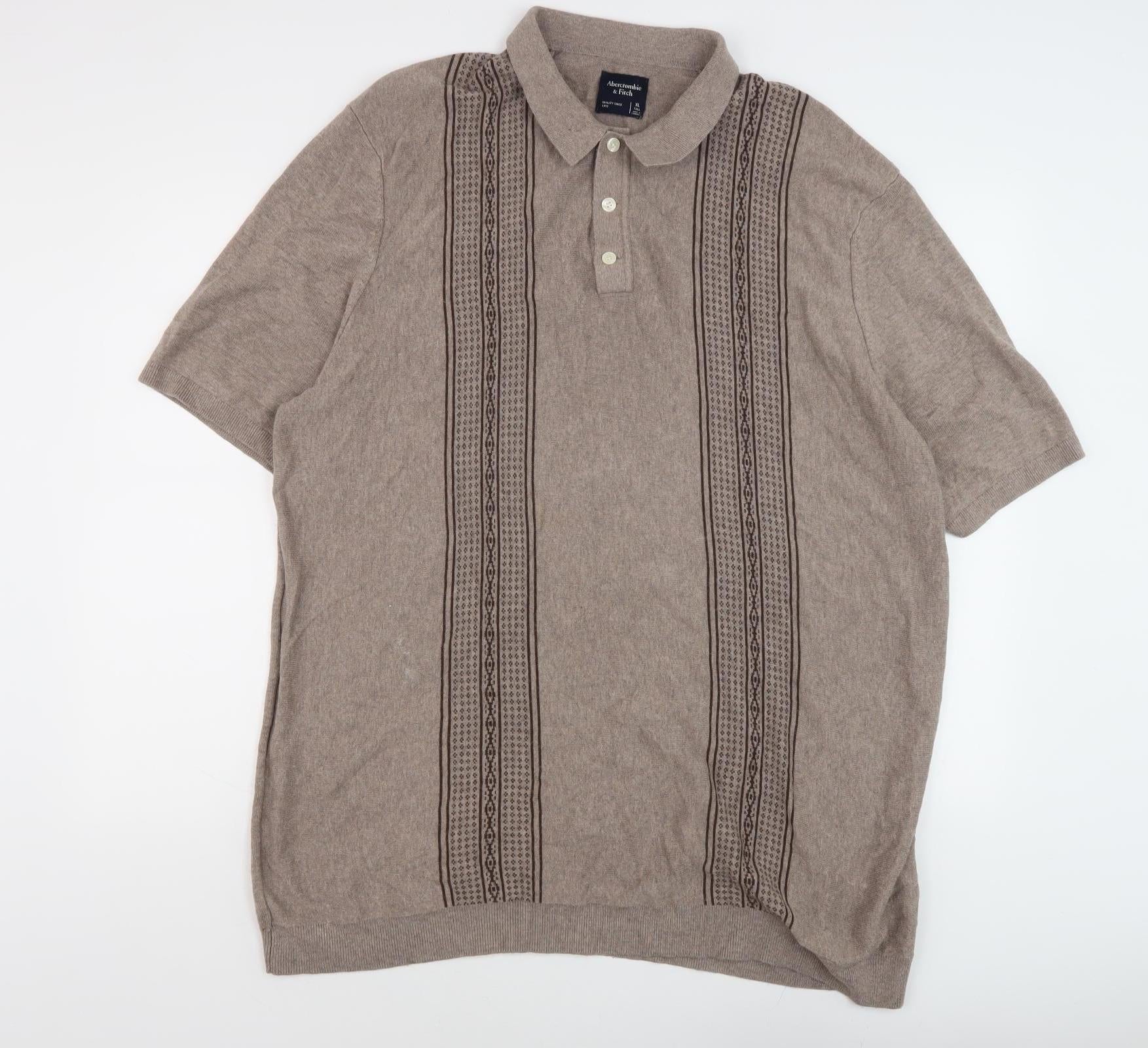 Discover timeless style with this Abercrombie & Fitch men's pullover jumper in a versatile beige colour. Crafted from high-quality cotton, this piece offers exceptional comfort and breathability, making it perfect for all seasons. The short sleeves and collared neckline provide a classic look, enhanced by button accents along the placket. Featuring a subtle geometric pattern, this jumper is a sophisticated choice for casual occasions. Designed in a regular fit, it pairs effortlessly with denim or chinos, making it a staple piece for any wardrobe. Whether you're heading to a casual meet-up or running errands, this jumper offers a blend of style and practicality. Moreover, it's conveniently machine washable, ensuring easy care and maintenance. Don't miss the chance to own this elegant yet laid-back Abercrombie & Fitch pullover, ideal for those looking to combine casual comfort with a touch of elegance.