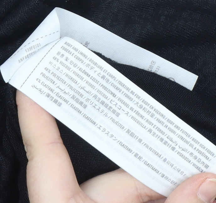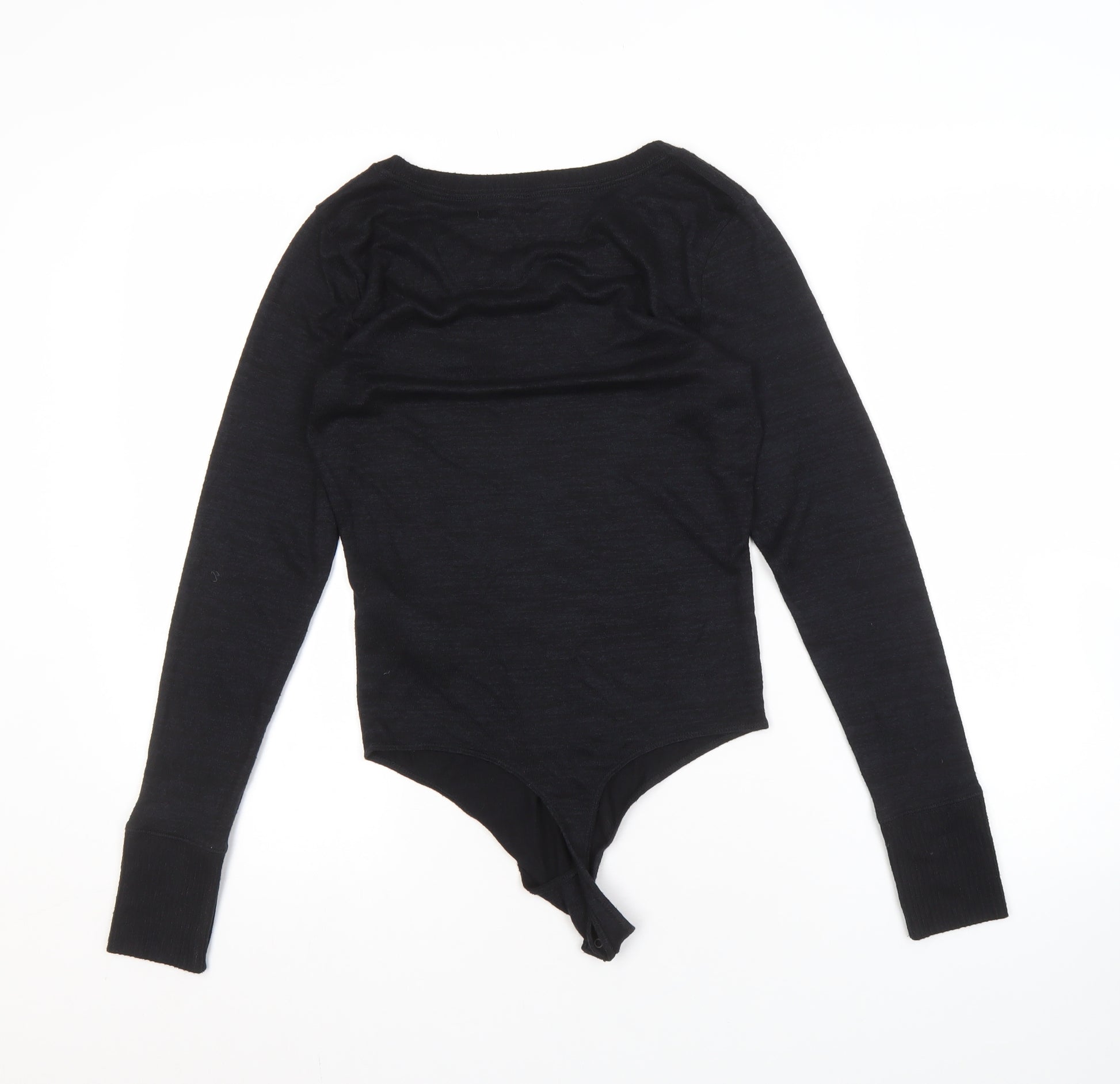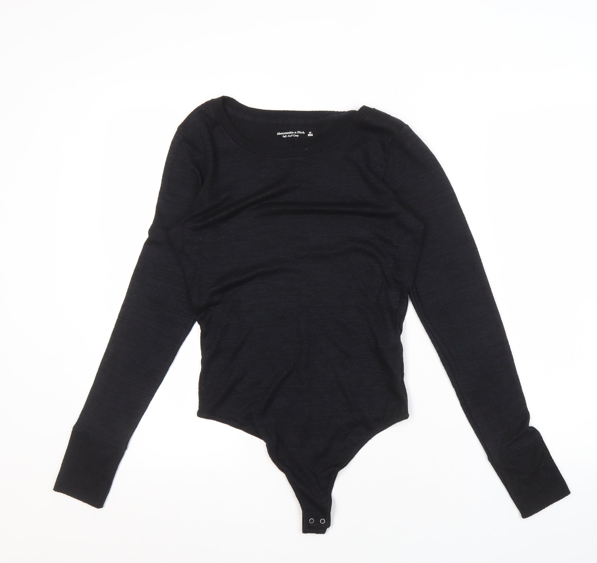 Experience the blend of comfort and style with this Abercrombie & Fitch women's top, crafted in a sophisticated black to effortlessly match any attire. Bearing a contemporary long sleeve design and tailored from soft, high-quality materials including viscose, polyester, and elastane, the top promises both durability and a comfortable fit. Its simple yet elegant round neckline makes it versatile for layering or wearing as a standalone piece, perfect for casual outings or relaxed settings. While its solid black colour offers a timeless appeal, the top’s excellent condition and modern craftsmanship provide assurance of wear without compromising on style or functionality. Ideal for the everyday wardrobe, elevate your fashion essentials with this well-crafted piece, promising to deliver both comfort and contemporary flair.