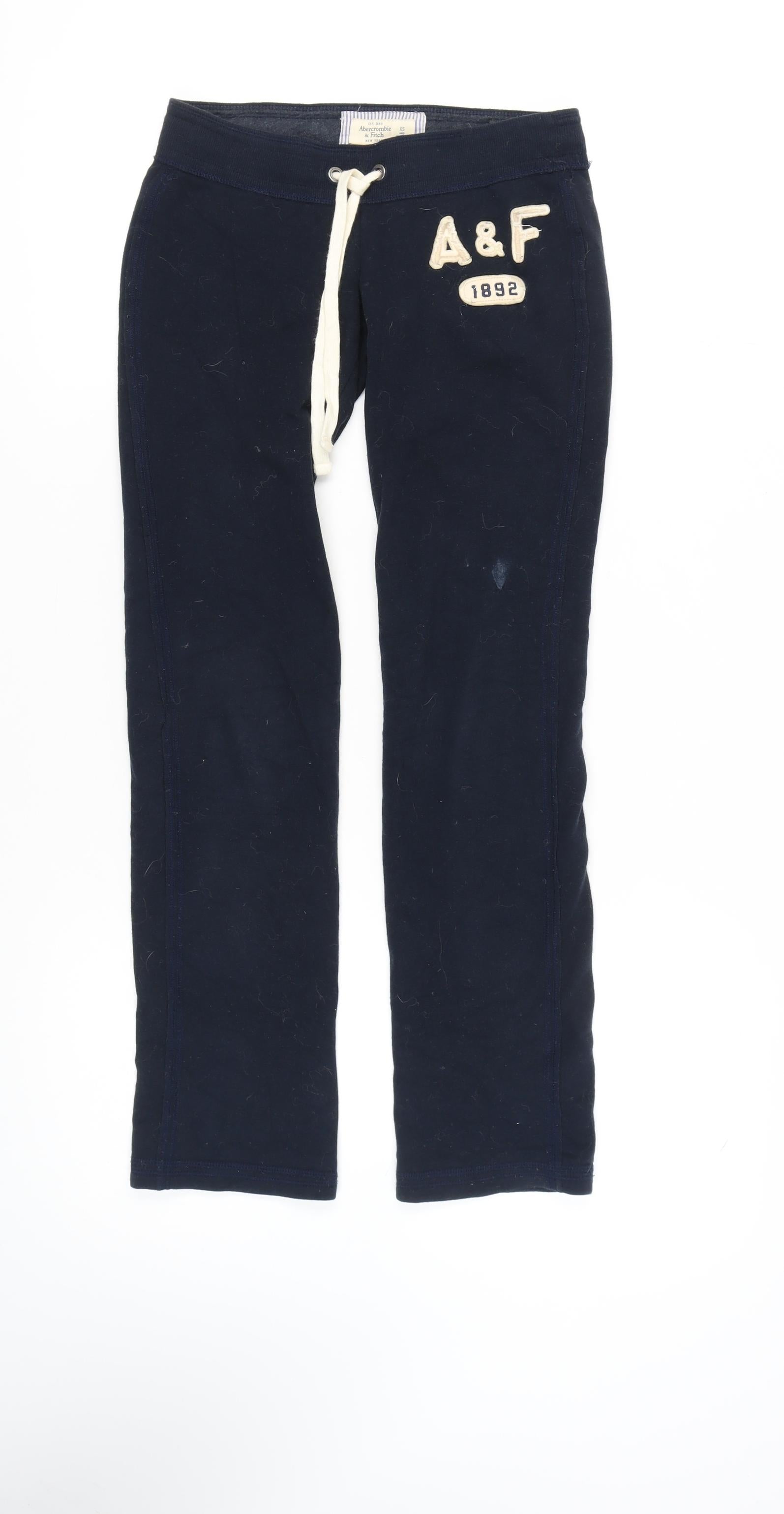 Discover the comfort and style of these Abercrombie & Fitch joggers, perfect for the casual look you've been searching for. Crafted primarily from Cotton with a blend of Polyester and Elastane, these blue joggers offer both warmth and stretch. Ideal for autumn and winter, they are designed for women and available in an XS size, making it a great fit for those who wear smaller sizes.The joggers feature a convenient drawstring closure, allowing you to adjust the fit to your liking for ultimate comfort. Displaying a classic logo accent, they add a touch of brand recognition and style. The flat front design offers a sleek and modern look without unnecessary bulk. Perfect for casual occasions, these joggers are great for lounging or running errands on chilly days.Although these trousers are in good condition, minor wear and visible lint give them a slightly used look, adding character while still being functional. The deep blue colour is versatile, pairing easily with a variety of tops and shoes, making it a staple for the season.These Abercrombie & Fitch joggers are more than just comfort; they're an emblem of casual sophistication. Whether you're staying in or stepping out, this piece ensures you're dressed stylishly, effortlessly elevating your casual wardrobe. Don't miss out on this essential wardrobe item, priced at just £12.00, offering great value for quality. Add it to your collection today for a savvy blend of comfort, style, and brand power.