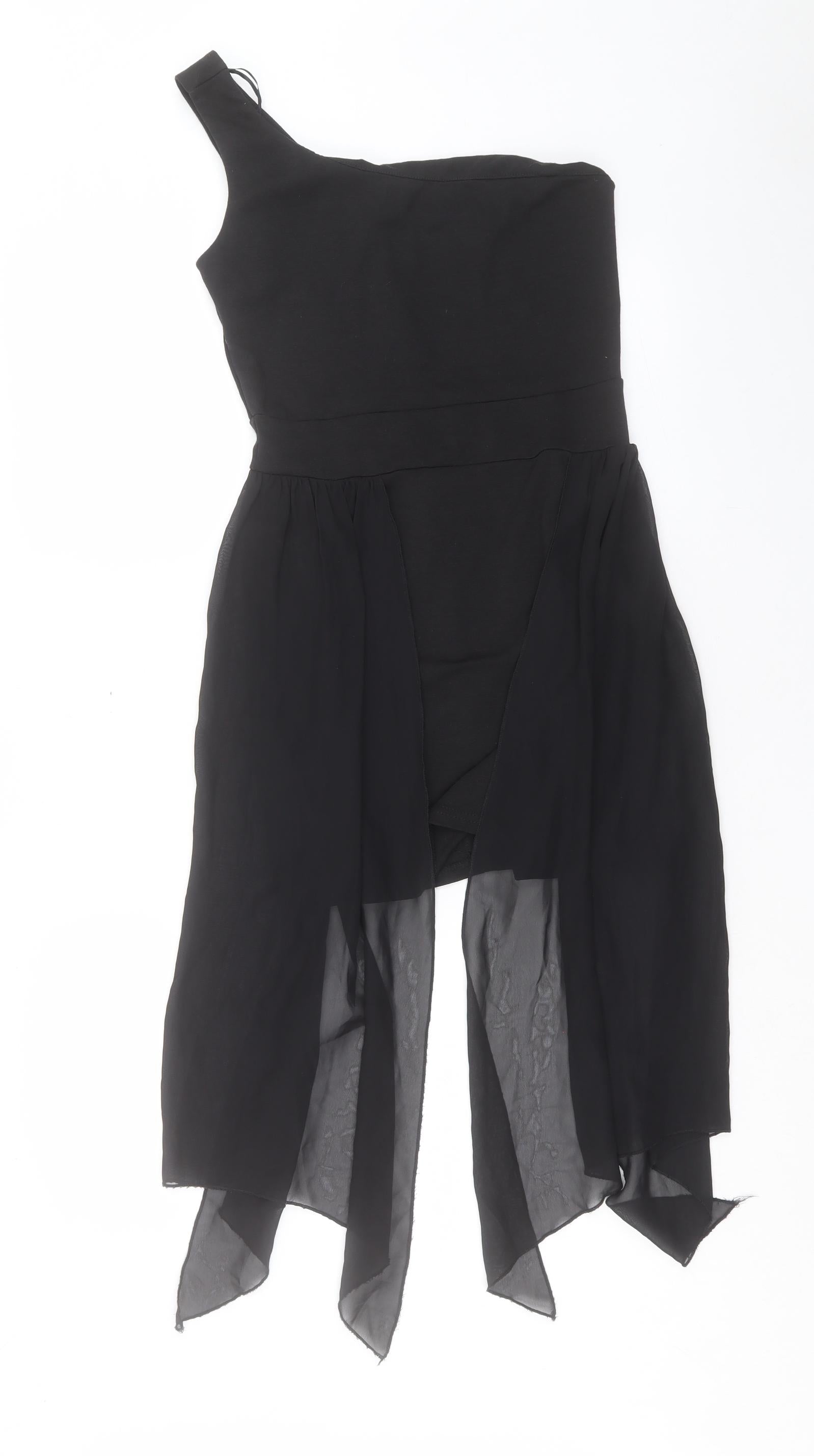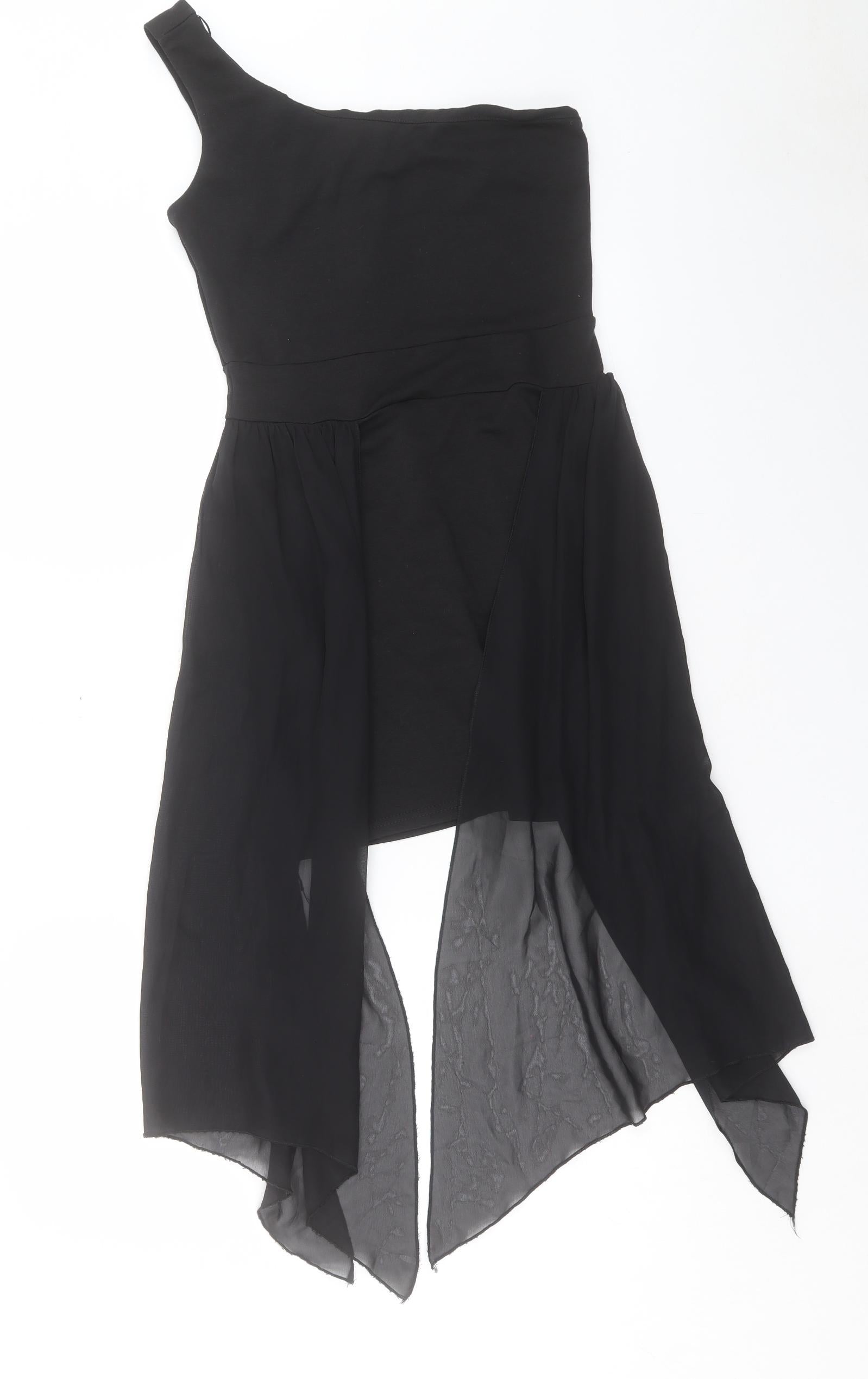 Womens Black Polyester Shift Size 10 One Shoulder Zip
