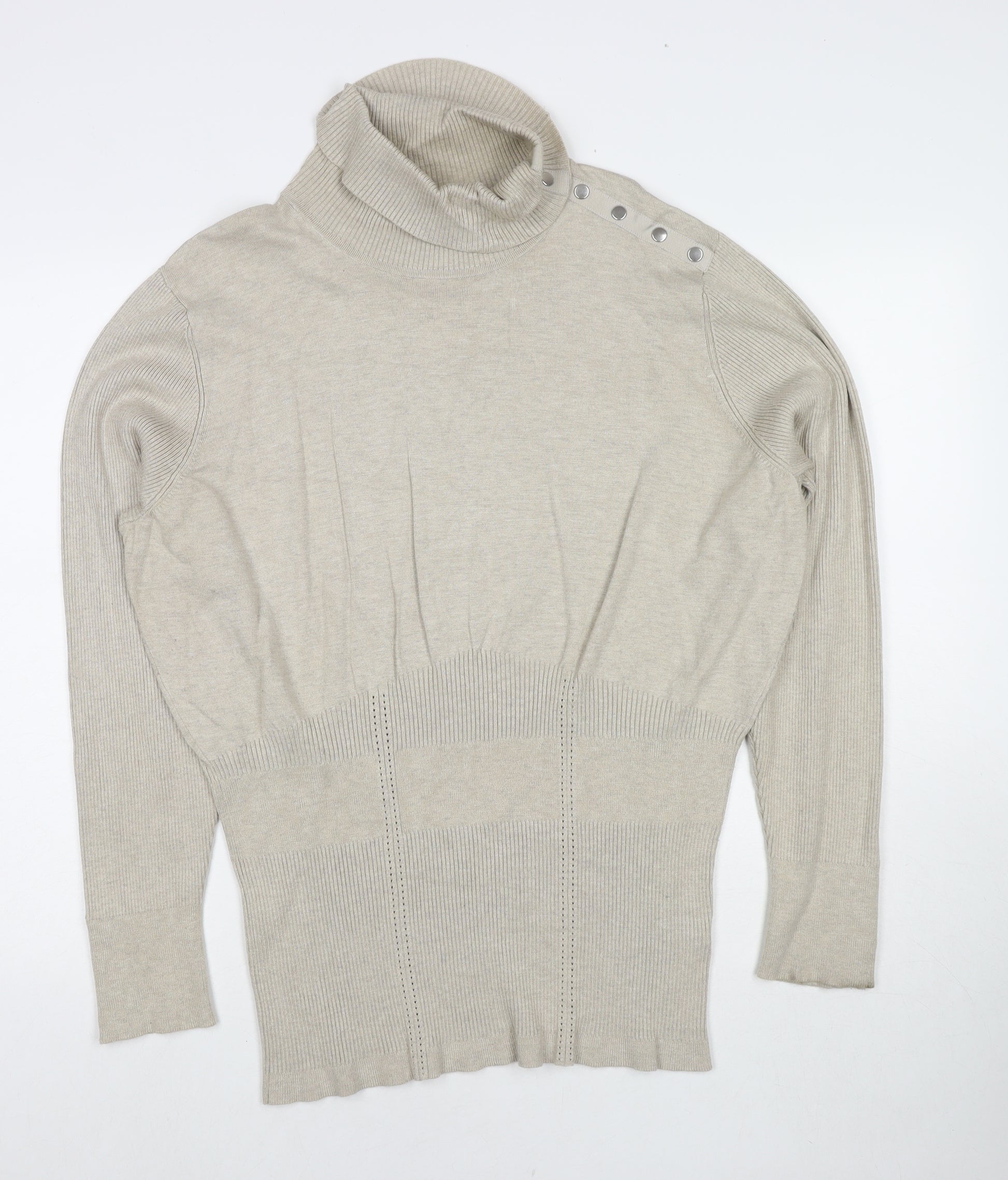 Womens Beige Roll Neck Rayon Pullover Jumper Size 3XL