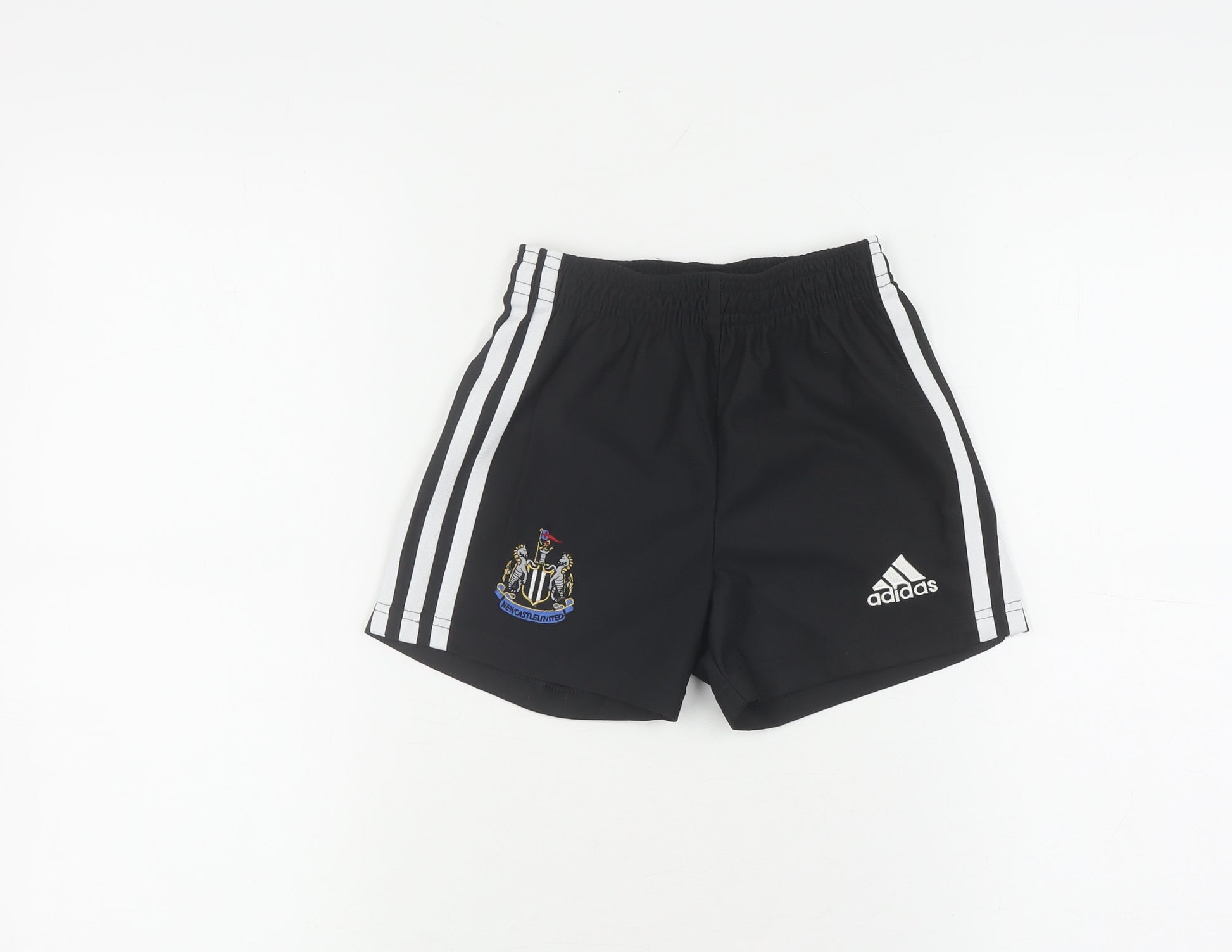 These Adidas boys' athletic shorts in sleek black are perfect for your young football enthusiast. Crafted from 100% polyester, these breathable and lightweight shorts are ideal for activewear, especially during summer. They feature an elastic waist to ensure a comfortable fit and allow for easy movement during play. The shorts carry a simple, no-pattern design, emblematic of sports theme apparel, and are finished with a stylish flat front. A practical choice for both casual outings and sports activities, these shorts offer durability and comfort. Machine washable for easy care, they're designed to keep up with the rough and tumble of playtime. A must-have for dynamic young sports fans.